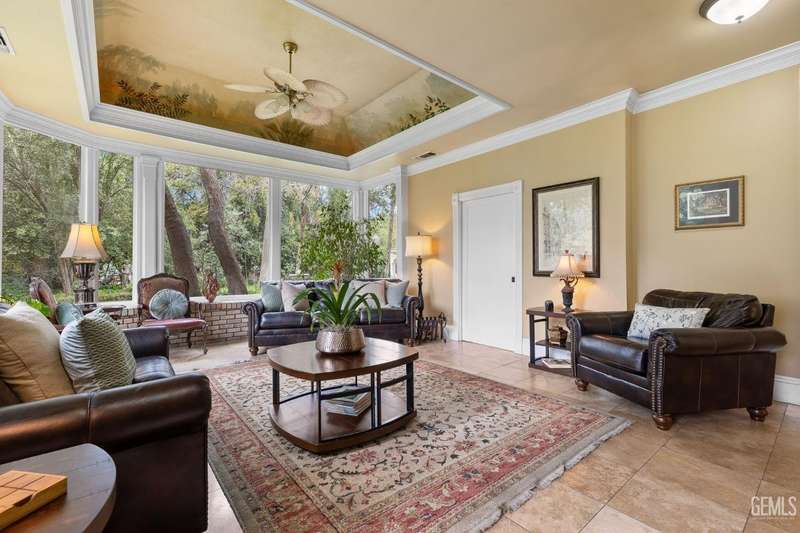 A rare estate on 1.57 acres in the heart of Oleander, this 6,000 sq. ft. residence is more than a home, it's a retreat. With three ensuite bedrooms plus three separate guest houses, the property offers unmatched flexibility for multigenerational living, long-term guests, or private workspaces. Towering trees, expansive lawns, and shaded patios create a park-like setting where breezes drift through and birdsong fills the air. Timeless architecture blends with a serene, natural backdrop to deliver both elegance and privacy. Designed for hosting or simply enjoying your own sanctuary, this estate provides the space, setting, and lifestyle rarely available in Bakersfield.