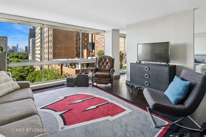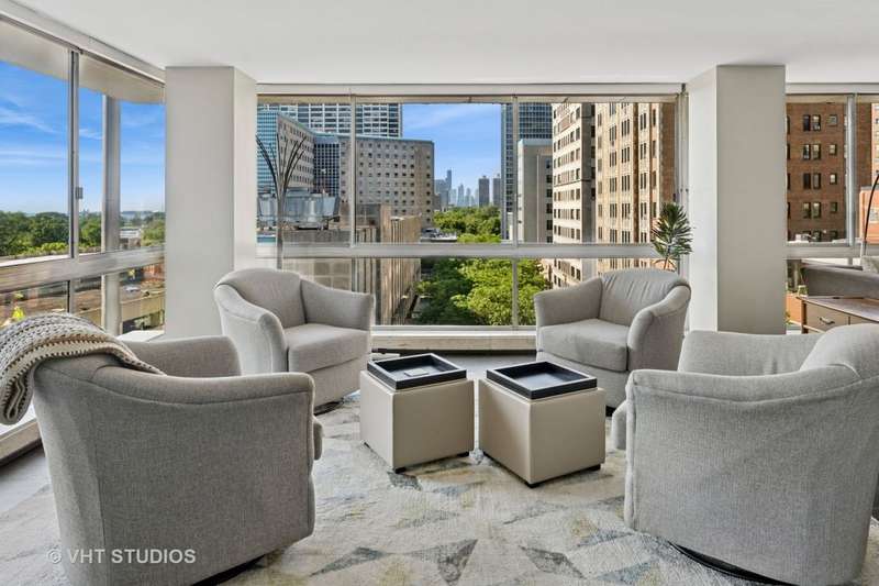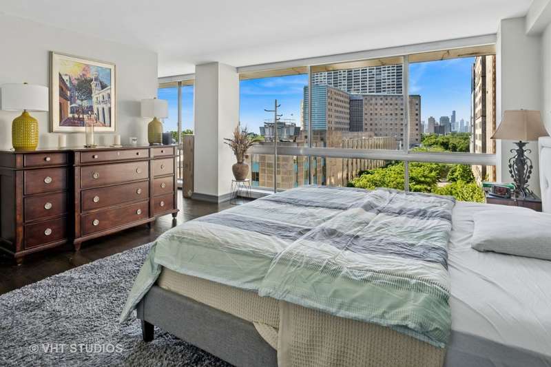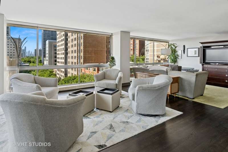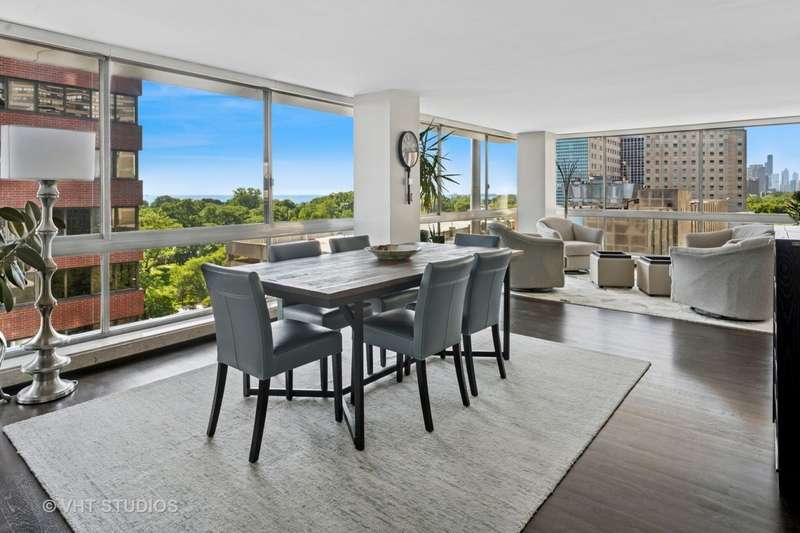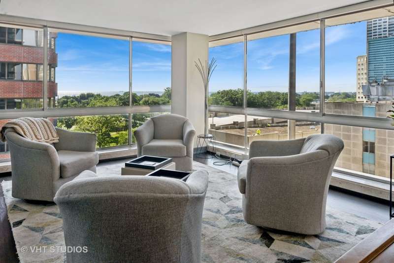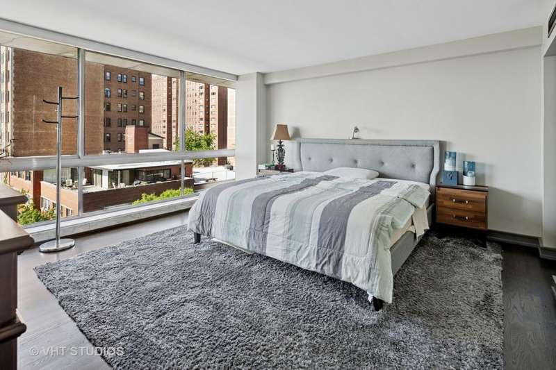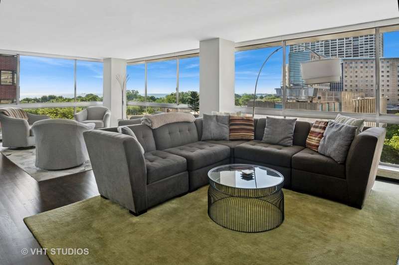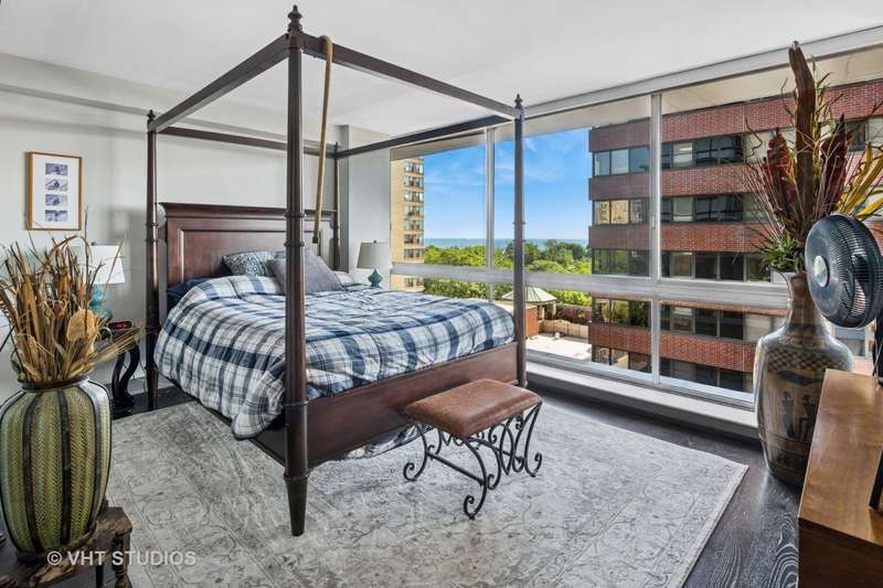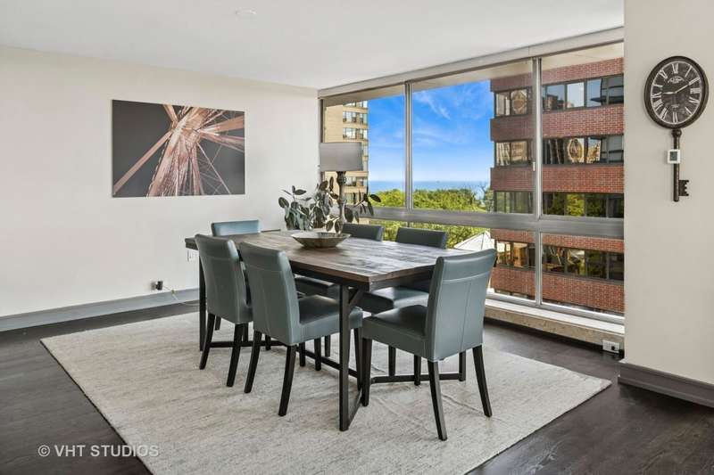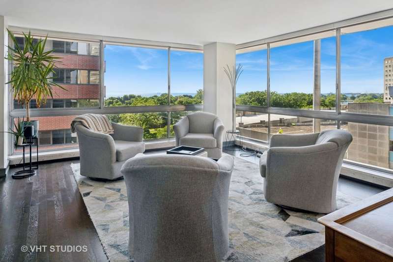 Rarely available! Completely renovated southeast corner unit with fabulous views of the lakefront and skyline from floor-to-ceiling windows. This unit is approximately 2,000 square feet. Hardwood floors, in-unit laundry, custom closets, storage, and a covered outdoor parking space included. Updated wiring and plumbing! Has the layout and feel of a single family home. Third bedroom is open and is being used as a den. Historic mid-century modern building designed by Milton Schwartz. Monthly assessment includes heat, air conditioning, cable and internet access. Building has professional management and maintenance. Only three units per floor. Easy to show!