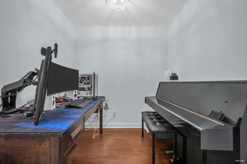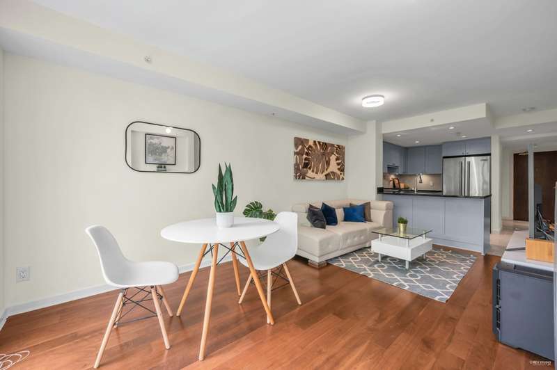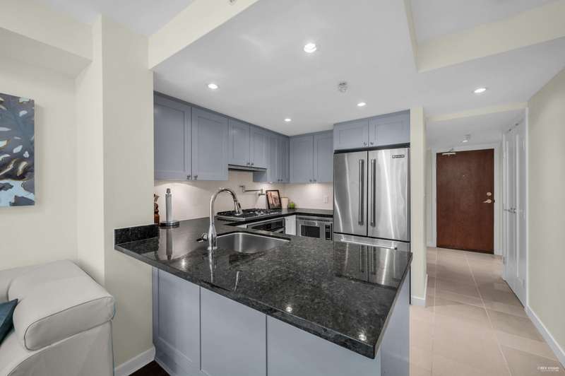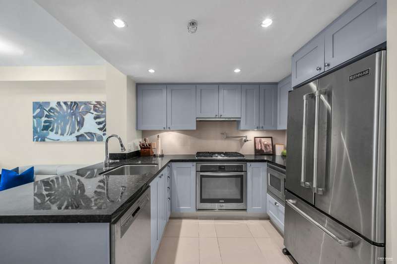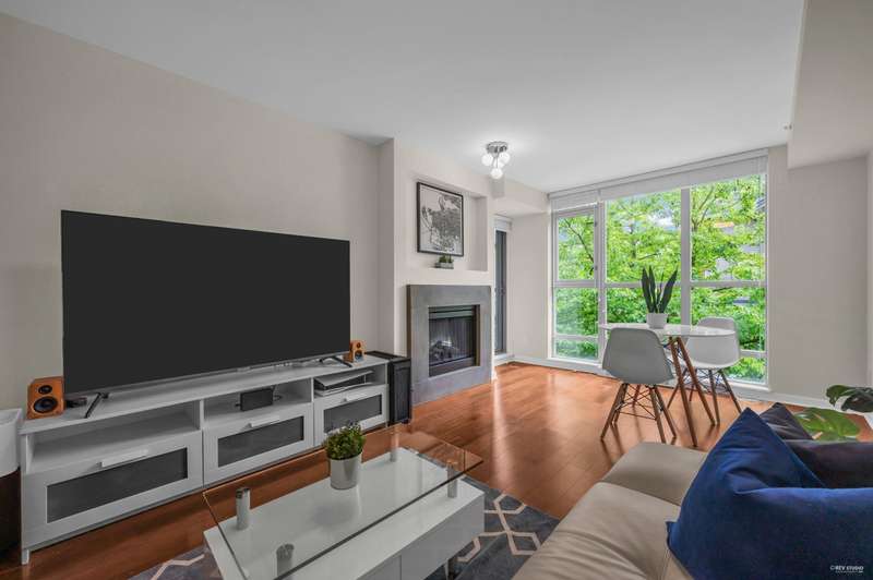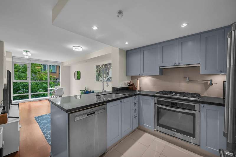 Welcome to award-winning Mandalay by Cressey – a rare, low-density CONCRETE residence tucked away in a tree-lined neighbourhood. This beautifully updated 1 Bed + Den home offers exceptional privacy on the most sought-after east-facing side of the complex – quiet and cool! A functional layout w/ tasteful upgrades (2021): smooth ceilings, tiled bathtub, updated bathroom, newer bedroom carpet, refinished kitchen cabinets, and brand new fresh paint. The Cressey kitchen features a gas cooktop, 2023 dishwasher, pot filler, and ample storage. Enjoy resort-style clubhouse: commercial-grade gym, indoor pool, hot tub, sauna, lounge, outdoor BBQ area & full-time caretaker. 1 parking & 1 locker Communal EV charging stations available. Don’t miss this rare gem!