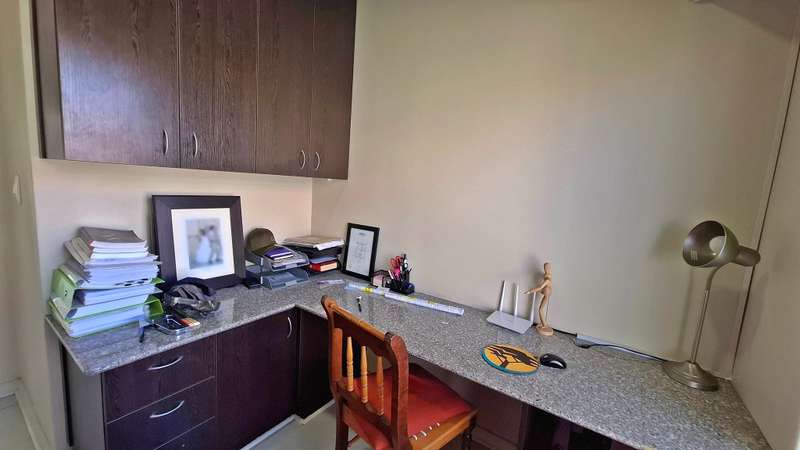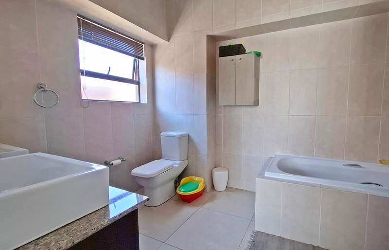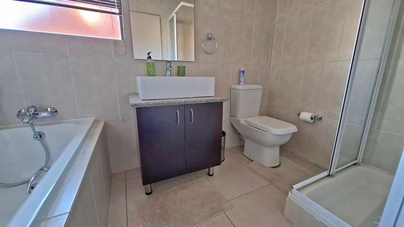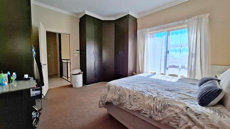 Perfectly blends comfort, space, and modern convenience. Boasting three spacious bedrooms, a dedicated study, and open plan living and dining areas, this property is ideal for families or professionals seeking both functionality and style. The modern kitchen features sleek granite countertops, a separate scullery, and flows effortlessly into the living spaces — perfect for entertaining. Step outside to the covered entertainment area, complete with a built-in braai and sliding doors leading to the garden, creating a seamless indoor outdoor lifestyle. A guest bathroom downstairs adds to the convenience. Upstairs, you'll find three well-sized bedrooms and a private study area. The main bedroom offers a balcony and a luxurious en suite full bathroom, while the two additional bedrooms share a second full bathroom. Additional features include a double automated garage with extra storage and direct access to the home. A pet friendly garden, and pre-paid water and electricity for flexible utility management. Don't miss out on this move-in-ready home offering space, style, and a great lifestyle.