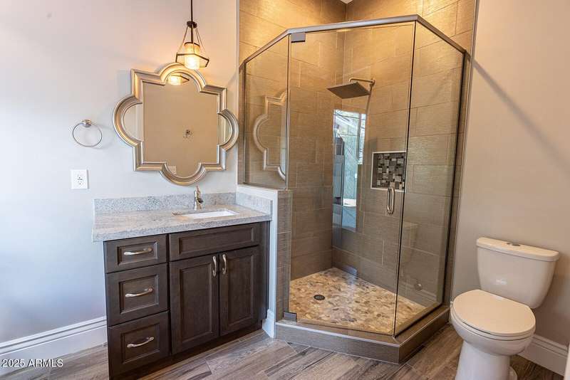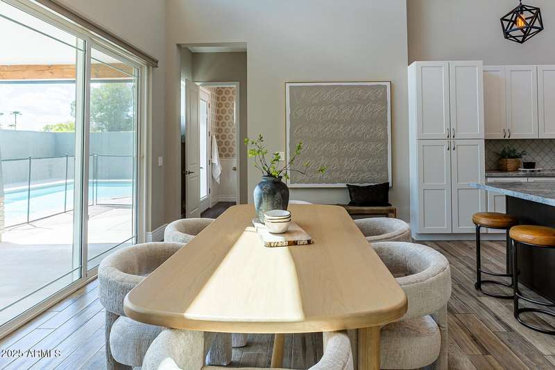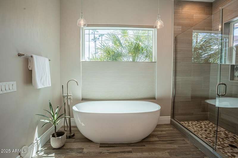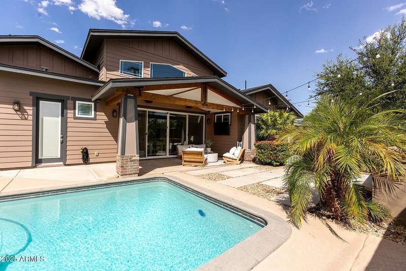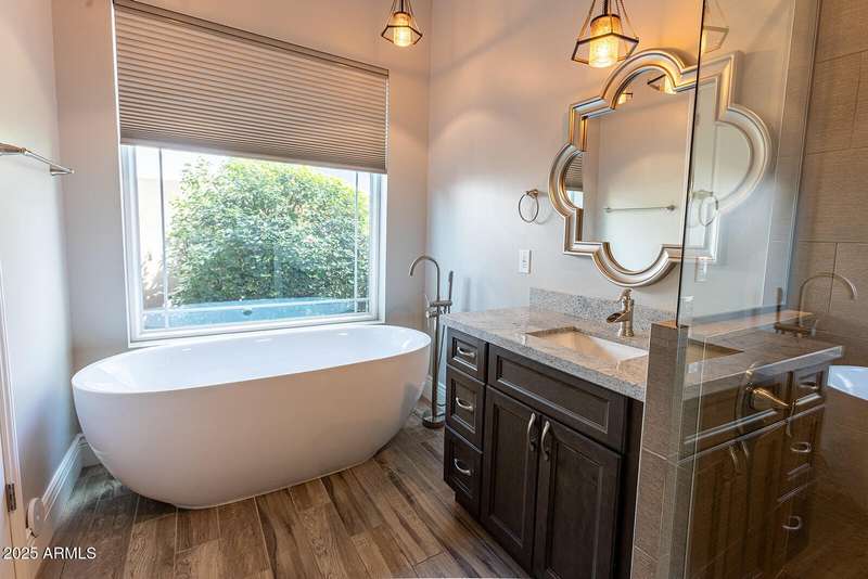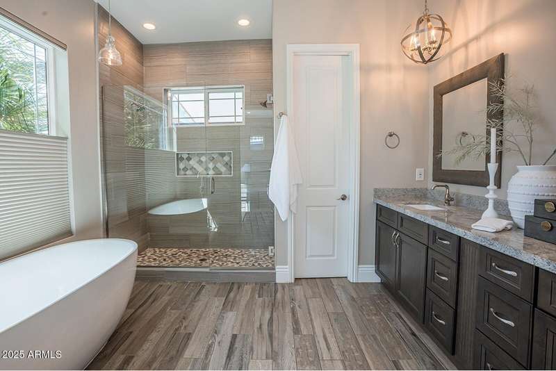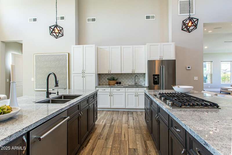 Built in 2016, this craftsman style home offers modern luxury, thoughtful design, and an ideal location near some of the area's best dining. Every detail has been curated for comfort and style, from its designer finishes and vaulted ceilings to floor-to-ceiling windows. The layout features an open-concept kitchen, dining, and living area with soaring ceilings and porcelain wood-look tile. The kitchen is a standout, boasting white shaker cabinets, granite countertops, stainless steel KitchenAid appliances, dual undermount sinks, and a five-burner gas range set on its own island. The spacious primary suite includes a large walk-in closet, sliding glass doors that lead to the backyard, and a serene en-suite bath complete with a freestanding soaking tub. The main guest bedroom features its own en-suite, while the remaining two guest rooms share a beautifully designed Jack-and-Jill bathroom. A generous laundry room with ample storage adds to the home's functionality. With its sleek style, modern upgrades, and unbeatable location, this 2016-built property is ready to impress.