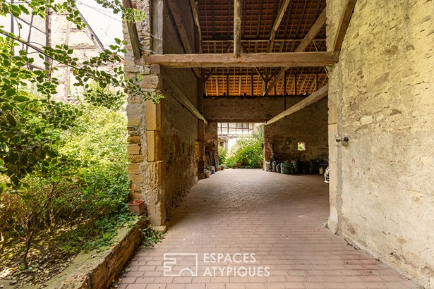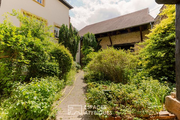 Outside, two gardens offer peaceful and pleasant spaces. A barn provides parking for several vehicles, with direct access to one of the village's main streets. The property enjoys a privileged location, close to shops, schools and services.