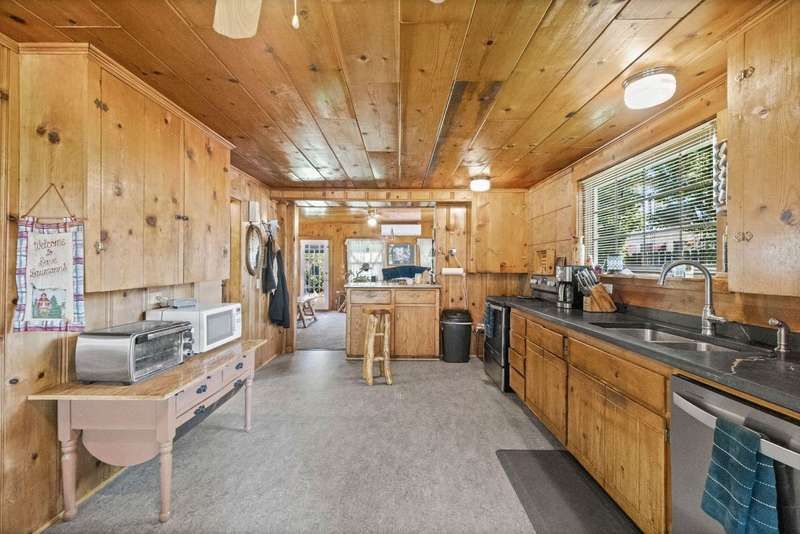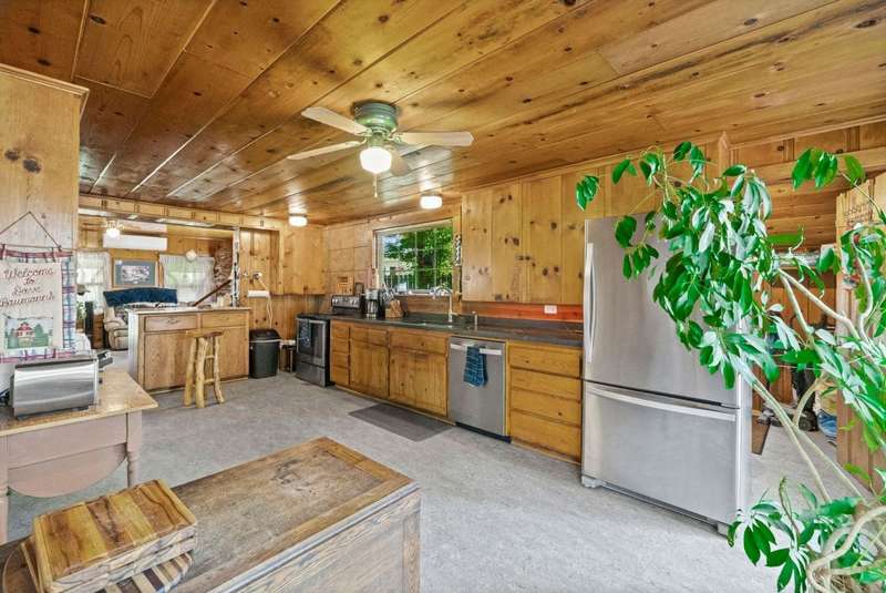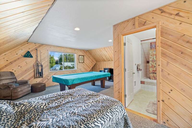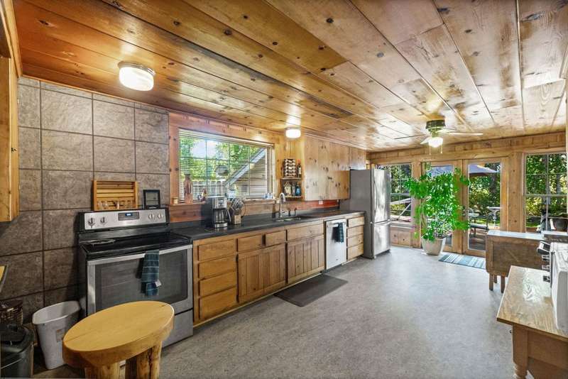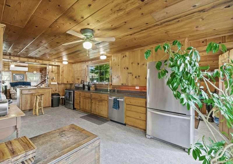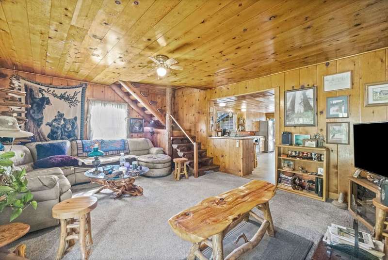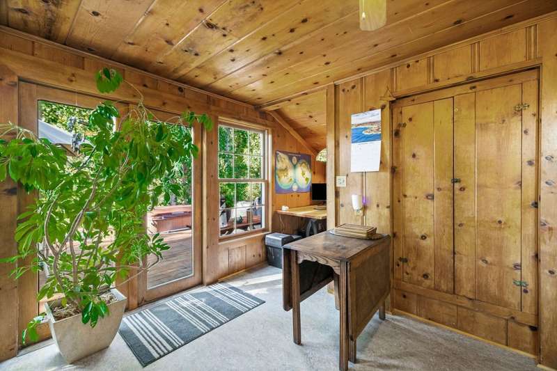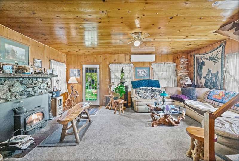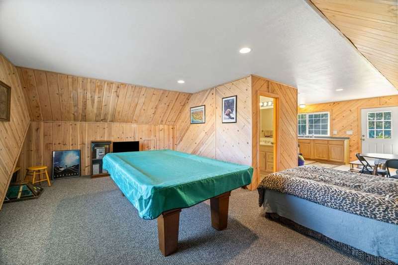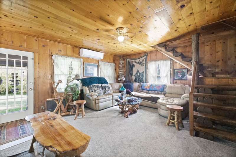 This is a very special opportunity to own a rare riverfront parcel on the majestic Feather River in Chester. Perfectly situated on Feather River Drive, the property enjoys a prime location at the edge of Old Towne?just a short stroll to coffee shops, local restaurants, charming boutiques, and all town services. Across the river lies Chester Park, where you can hear the crack of a Little League bat while you relax on the riverside deck. Enjoy the soothing hot tub, open rock fireplace, and the tranquil sounds of the river?rushing in spring, then turning to a lazy meander in late summer and fall. From your back door, watch ducks, geese, deer, and other abundant wildlife in their natural habitat, or drop your line into your personal deep fishing hole. The vintage 1940 cabin exudes rustic charm, featuring original knotty pine tongue-and-groove woodwork, a cozy living area with wood stove, a spacious kitchen, one bedroom, and one bath. The heat pump provides heat and air conditioning to keep you comfortable in all seasons. The back deck sits just above the waters edge?it doesnt get more idyllic than this. At the front of the property stands a newer heated 3-car garage, with space for an RV/trailer, additional vehicles, and all your recreational toys. Inside, a large workbench and half bath make it a craftsmans dream. The roof on the garage is only 2 years old. Above the garage is a spacious studio apartment, complete with open living/sleeping area, kitchenette, and full bath?ideal for guests, extended family, or rental income. A heated concrete driveway ensures winter convenience, while two adjoining carports provide even more covered parking.The property is enhanced by mature trees, sprawling lawns, and lush landscaping, creating a serene, park-like setting. Just 30 miles from Lassen Volcanic National Park and minutes to the Olsen Barn, Lake Almanor, and endless acres of forest, creeks, lakes, and meadows, this location is a true outdoor enthusiasts paradise.