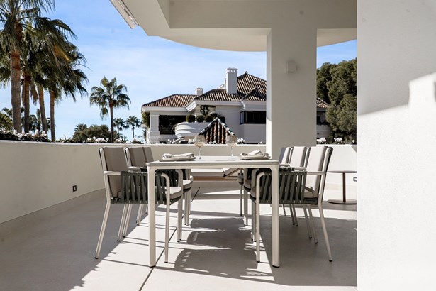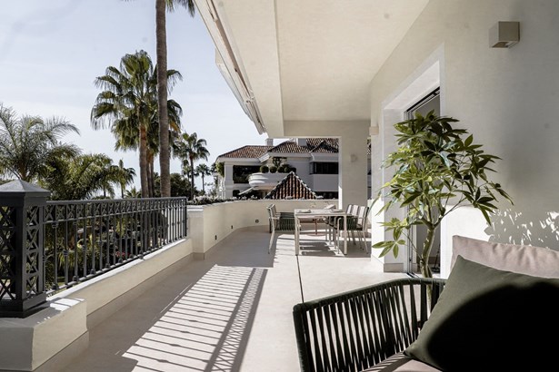 A classy, timeless apartment that reflects sophistication, elegance, and enduring style. It has superb open sea views and located in the most sought-after location and gated complex in the area of Golden Mile, Marbella.This first floor apartment has a feel of a penthouse due to open sea views and it is the perfect blend between the Andalusian style complex and the modern living. The designer gave a subtle touch of neutral color palette with top of the range furniture and furnishings , dark oak wood decors for a sophisticated feel and the perfect in and out feel with the terrace flowing together with the living room area.The layout is very functional without having any lost spaces offering a built area of 137m² and a spacious terrace of 82m² featuring 3 bedrooms and 2 bathrooms, just ideal for families or those looking for a comfortable home.Walkthrough : Short entrance hall , beautifully designed open plan kitchen that is fully fitted with modern appliances. The living area