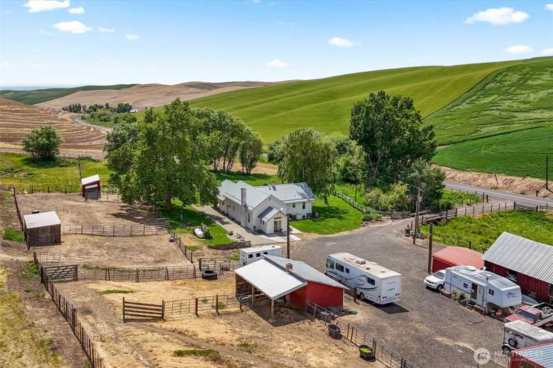 Originally a school house, and the childhood home of "TV's Batman" Adam West, this property is perfect for horse lovers, offering lush pastures, barn, pens and multiple outbuildings for storage. It also has 2 RV hookups for hosting or extended stays. This beautifully updated 4 bed, 2 bath farmhouse on 10.02 acres is just outside of Waitsburg and only 11mi to Walla Walla. This 1925 home features a finished basement, cozy fireplace, and tons of recent upgrades. Just ask to see the list of updates! The perfect peaceful rural setting just minutes from town—move-in ready and full of charm!