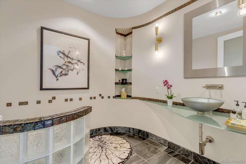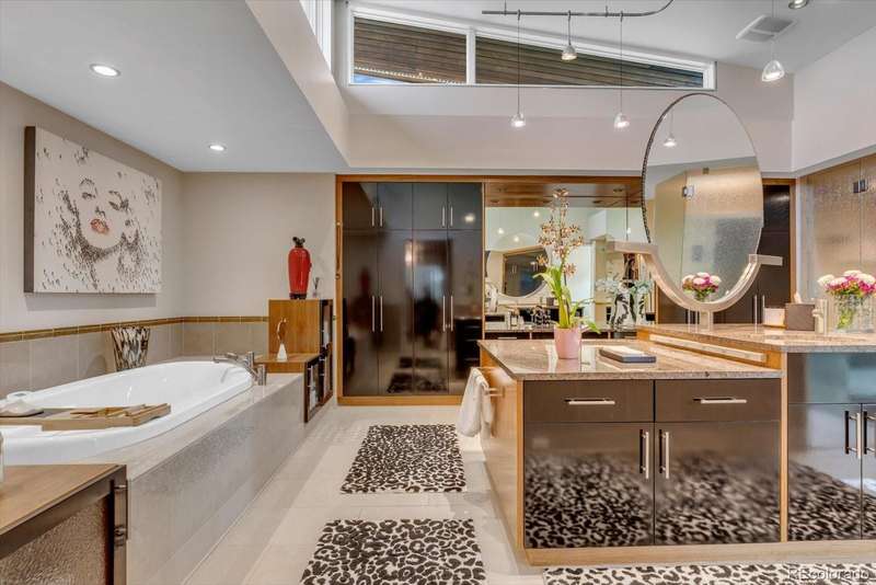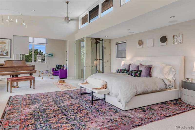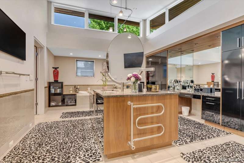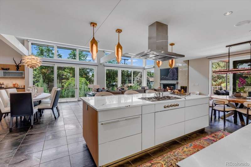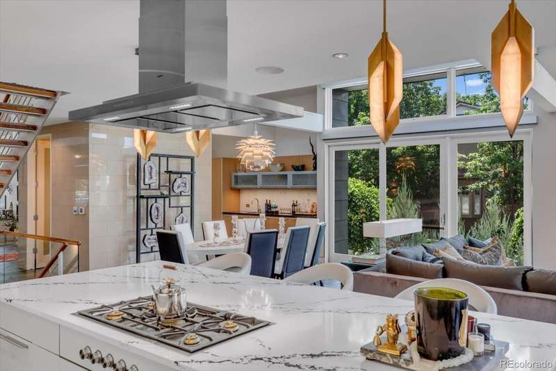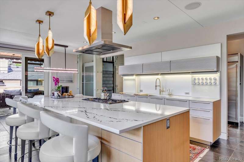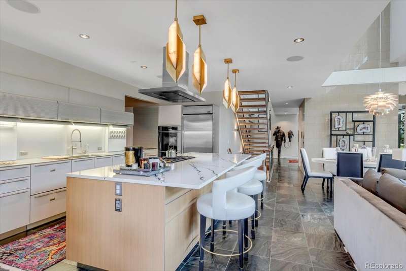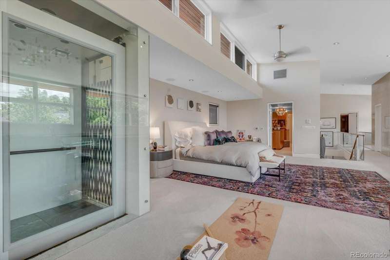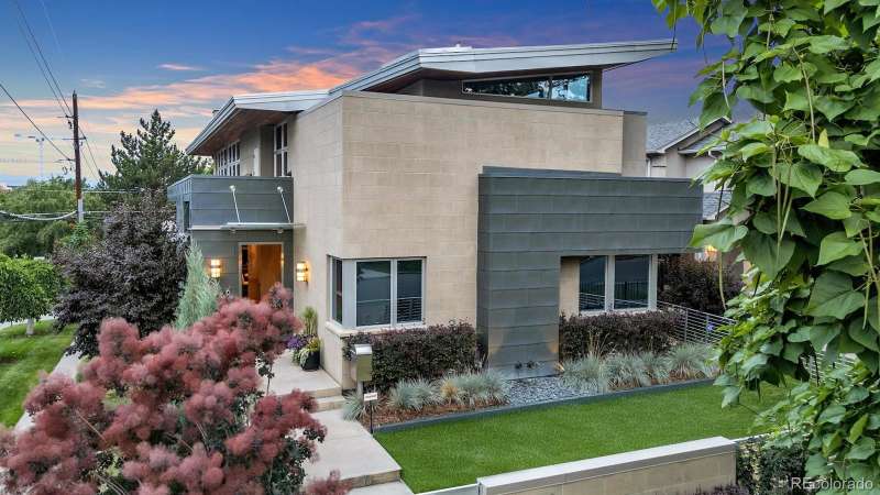 This modern Cherry Creek masterpiece is a true work of art. Sleek, sophisticated and contemporary styling pairs with extraordinary design and exceptional craftsmanship. Including a very rare walk-out level, this home showcases a dramatic entrance, soaring 20-foot ceilings that flows to the great room with a three-story sunny south facing curtain wall. This open-concept layout seamlessly connects the great room anchored by a striking fireplace, honed slate flooring and exquisite finishes. At the heart of the home is a state-of-the-art Bulthaup kitchen, featuring a spacious center island, custom cabinetry, adjoining pantry, kitchen planning desk and room for casual dining. The west facing terrace, has heaters, automatic sunshade, built-in grill and ample space for outdoor dining and seating. Additionally on the main level are two guest bedrooms with en-suite baths, guest powder room and stylish home office with cozy fireplace and museum style glass display shelving. A modern style glass elevator offers access to all three levels. The upper-level luxurious primary retreat includes a sitting area, private covered balcony with mountain views and glass fire tube fireplace. The spa-inspired 7-piece bath with enclosed toilet & bidet, infra-red sauna, jetted tub, steam shower, sink island, custom walk-in closet, and dedicated laundry. The walk-out lower level offers flexible living with glass wall sun-filled recreation rooms with side yard access, gym/4th bedroom with lock off closet & glass wall and a game room/5th bedroom with armoire storage. There is a three-quarter bath, second laundry room, ample storage & utility room. The two-car garage also accesses this level. Nice extras include a backup Generac Generator & exterior snow melt system. Located just blocks from the vibrant heart of Cherry Creek, this one-of-a-kind property is an iconic expression of modern Denver luxurydesigned for comfort, style, and spectacular living.