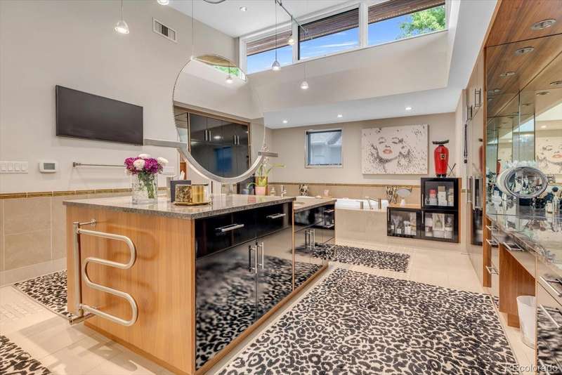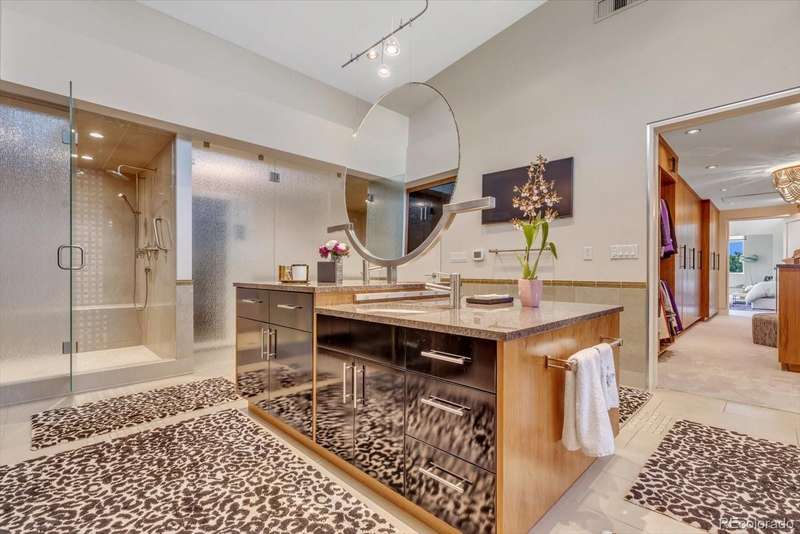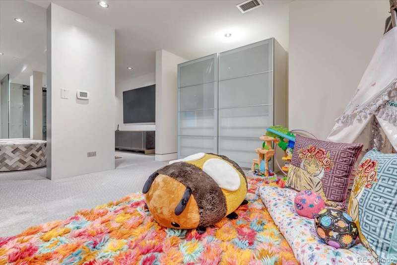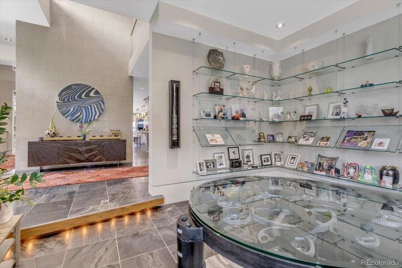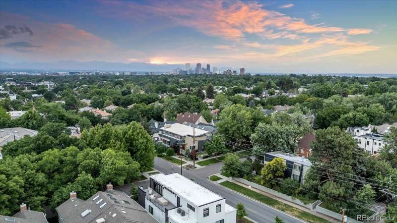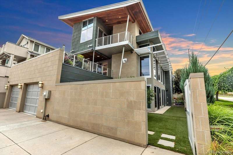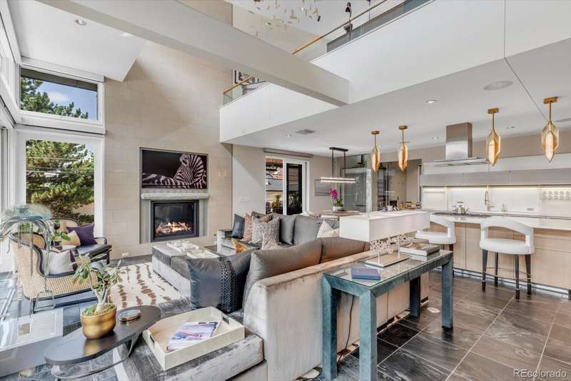 This modern Cherry Creek masterpiece is a true work of art. Sleek, sophisticated and contemporary styling pairs with extraordinary design and exceptional craftsmanship. The home showcases a dramatic entrance, soaring 20-foot ceilings that flows to the great room with a three-story sunny south facing curtain wall. This open-concept layout seamlessly connects the great room anchored by a striking fireplace, honed slate flooring and exquisite finishes. At the heart of the home is a state-of-the-art Bulthaup kitchen, featuring a spacious center island, custom cabinetry, adjoining pantry, kitchen planning desk and room for casual dining. The west facing terrace, has heaters, automatic sunshade, built-in grill and ample space for outdoor dining and seating. Additionally on the main level are two guest bedrooms with en-suite baths, guest powder room and stylish home office with cozy fireplace and museum style glass display shelving. A modern style glass elevator offers access to all three levels. The upper-level luxurious primary retreat includes a sitting area, private covered balcony with mountain views and glass fire tube fireplace. The spa-inspired 7-piece bath with enclosed toilet & bidet, infra-red sauna, jetted tub, steam shower, sink island, custom walk-in closet, and dedicated laundry. The RARE walk-out lower level offers flexible living with glass wall sun-filled recreation rooms with side yard access, gym/4th bedroom with lock off closet & glass wall and a game room/5th bedroom with armoire storage. There is a three-quarter bath, second laundry room, ample storage & utility room. The two-car garage also accesses this level. Nice extras include a backup Generac Generator & exterior snow melt system. Located just blocks from the vibrant heart of Cherry Creek, this one-of-a-kind property is an iconic expression of modern Denver luxurydesigned for comfort, style, and spectacular living.