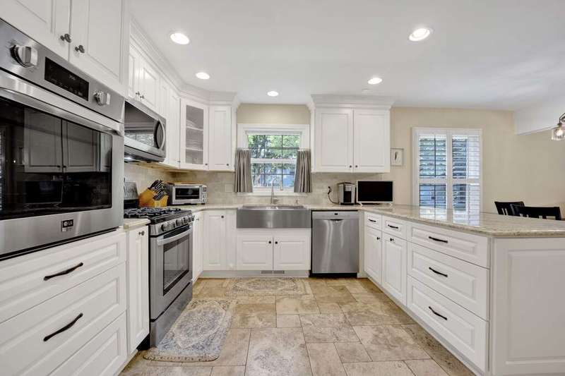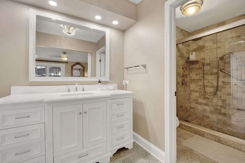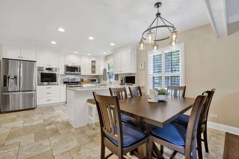 Step inside this beautifully updated 4-bedroom, 3-bathroom ranch home with a fully finished basement, perfectly situated on a quiet cul-de-sac in the highly sought-after Courts of Creek neighborhood in Naperville. Renovated in 2018 and continuously updated, this move-in ready home features a brand-new roof (2025), new exterior doors, new flooring and carpet throughout, fresh paint, updated lighting, a completely remodeled kitchen, new window treatments, and more. The main level offers a bright and spacious family room, separate dining area, and an updated kitchen with stainless steel appliances, granite countertops, wall oven, beverage fridge, pantry, and breakfast nook. The adjacent living room features a gas-burning fireplace and opens directly to an enclosed private courtyard-complete with new blue stone tiles and an electronic retractable awning, ideal for relaxing or entertaining. Four main-level rooms offer access to this serene courtyard space. The large primary suite includes a walk-in closet with custom built-ins and a beautifully updated en-suite bathroom. Two additional main-level bedrooms provide generous space, natural light, and ample closet storage with custom built-ins, along with an updated second bathroom. Also on the main level is a laundry room with access to the attached two-car garage, featuring epoxy flooring and new shelving. The professionally finished basement adds incredible versatility with a large recreation room, full bar with beverage fridge, fourth bedroom, and third full bathroom-perfect for guests, a home office, or an in-law arrangement. Additional upgrades include a high efficiency HVAC system, new water heater, central vacuum system, Ring alarm system, electric dog fence, and an in-ground sprinkler system. Outside, enjoy a professionally landscaped yard in a peaceful, private setting. Conveniently located near downtown Naperville, parks, shopping, dining, train, highway access, and within top-rated District 203 schools.