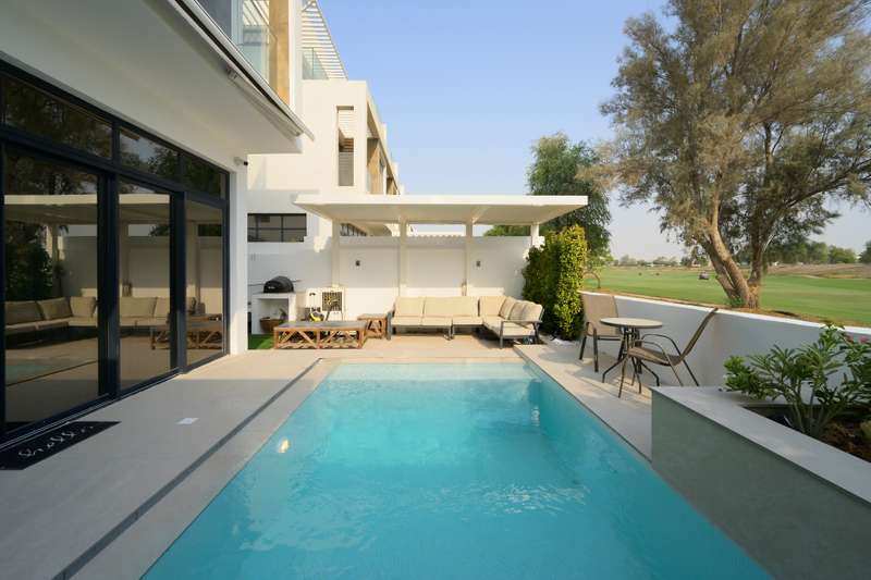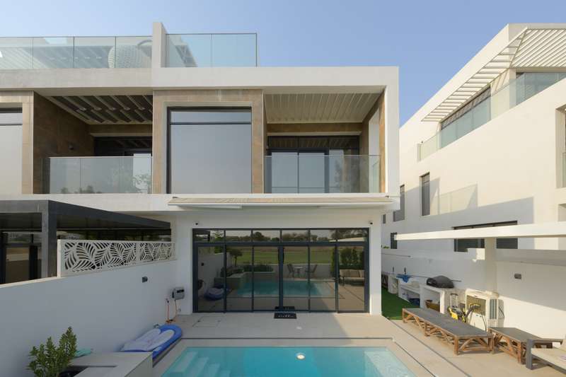 Betterhomes is delighted to present this fully upgraded 4-bedroom plus maid’s townhouse in Jumeirah Luxury Living, set on the prestigious Fire Course at Jumeirah Golf Estates. This rare corner unit blends modern design with bespoke upgrades, offering the perfect balance of style, comfort, and exclusivity. Features: - Full golf course view - BUA - 3,504 Sqft - Plot - 2,809.60 Sqft - Fully upgraded with show kitchen & micro cement flooring - Private pool, pergola & BBQ area - 4 bedrooms plus maid’s room - 2 parking spaces - Gated, secure community - Roof Terrace Amenities: Jumeirah Golf Estates Clubhouse Shared pool, gym & tennis courts F&B and golf membership discounts Jumeirah Luxury Living combines sustainability with modern architecture, giving residents access to world-class facilities and two championship golf courses—Fire and Earth, home of the DP World Tour Championship.