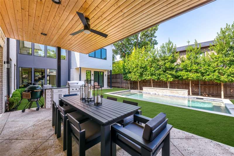 Welcome to 7119 Deer Trail a thoughtfully crafted five-bedroom residence in one of Dallass most desirable neighborhoods, served by White Rock Elementary. Nestled beside horse stables, scenic Flagpole Hill, and White Rock Lake, this home offers rare tranquility in the heart of the city.Designed by 5 West and completed in 2021, the home showcases elegant living and dining spaces, a private office, and a full mother-in-law suite with sliding doors that open to the sparkling pool, outdoor fireplace, and covered living area. Upstairs, discover three secondary bedrooms, a spacious playroom, and an expansive primary retreat designed for comfort and privacy. Throughout, designer finishes, a striking floating metal staircase, museum-finish walls, and steel-framed windows highlight where sophistication meets exceptional design in a rare offering unlike any other.