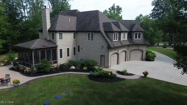 Welcome to Your Exquisite Custom-Built Dream Home! Step into this stunning, custom-designed residence showcasing impeccable taste, thoughtful architectural details, and professionally landscaped grounds. Enter through a raised foyer that opens to a breathtaking great room, highlighted by soaring two-story bayed cantilever windows that flood the space with natural light. The great room flows seamlessly into the chef's kitchen, separated by a stylish double-sided fireplace -perfect for both ambiance and functionality. This gourmet kitchen is a true entertainer's dream, featuring a massive 9.5-foot island with cabinetry and drawers on both sides, and top-of-the-line Viking appliances -including a double oven and a six-burner gas stove with griddle. And yes, there's even a pot filler to truly spoil the chef! Adjacent to the kitchen is a charming eat-in area and a cozy hearth room, which boasts a second fireplace and dual access to a screened-in porch, ideal for relaxing morning, nights or afternoons. Step outside to a beautifully crafted two-tier paver patio, complete with a tranquil waterfall flowing from the upper to the lower level - your own private oasis. A newer generator ensures peace of mind during inclement weather. From the lower patio, enter the spectacular walk-out finished basement, offering a full guest suite with bedroom and bath, a stunning wet bar with blown glass pendant lighting by Cleveland Art, an exercise room with brand-new foldable windows, and a custom wine room. Additional highlights include an oversized garage with an EV Charger, exceptional craftsmanship and luxurious finishes throughout, a perfect blend of elegance, comfort, and functionality. Every inch of this home has been thoughtfully curated for luxurious living and effortless entertaining. Don't miss your chance to experience this extraordinary property.