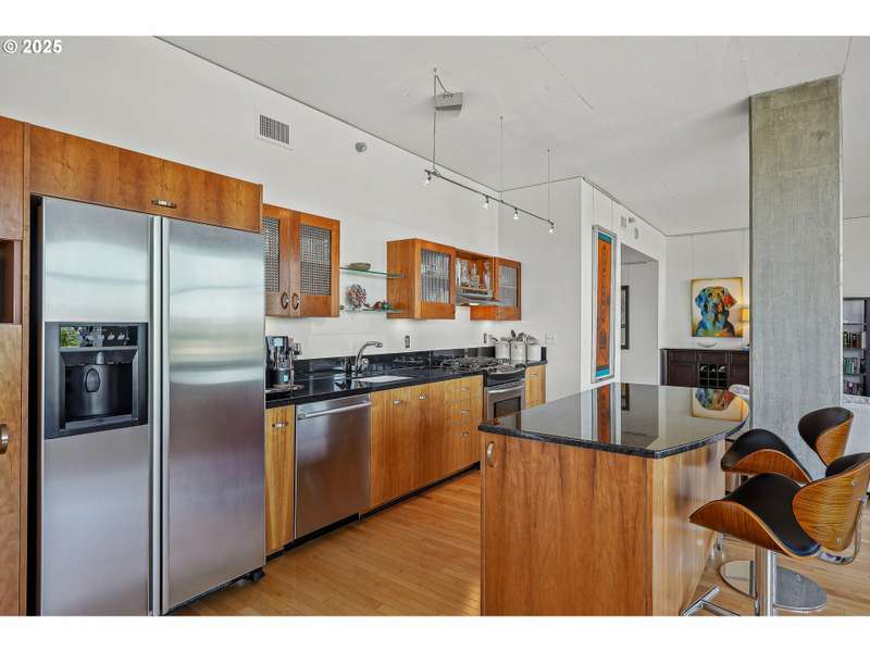 Elevate your lifestyle in this elegant high-floor residence at the iconic Elizabeth Lofts Condominium, one of the Pearl District’s most celebrated Art Deco style buildings. Loft 1007 offers an expansive open-plan layout bathed in natural light with panoramic views of Mt. Hood, St. Helens and the vibrant Portland cityscape skyline all framed through wrap-a-round windows.This sophisticated urban retreat features high ceilings, sleek concrete pillars, and hardwood floors, seamlessly blending industrial chic with modern elegance. The spacious layout allows for flexible living, dining, and entertaining configurations, perfect for those who value both form and function. Enjoy the convenience of a concierge building, additional storage unit, secured parking and a walkable neighborhood filled with world-class dining, boutique shopping, galleries, and parks—all just steps from your front door. Elizabeth Loft 1007 isn’t just a home; it’s a statement. Come experience one of Portland’s most coveted addresses.