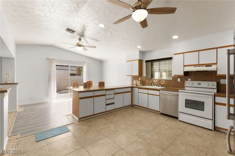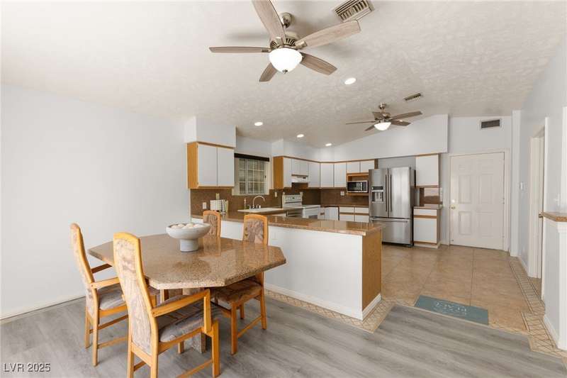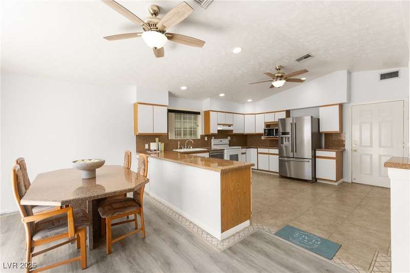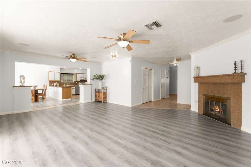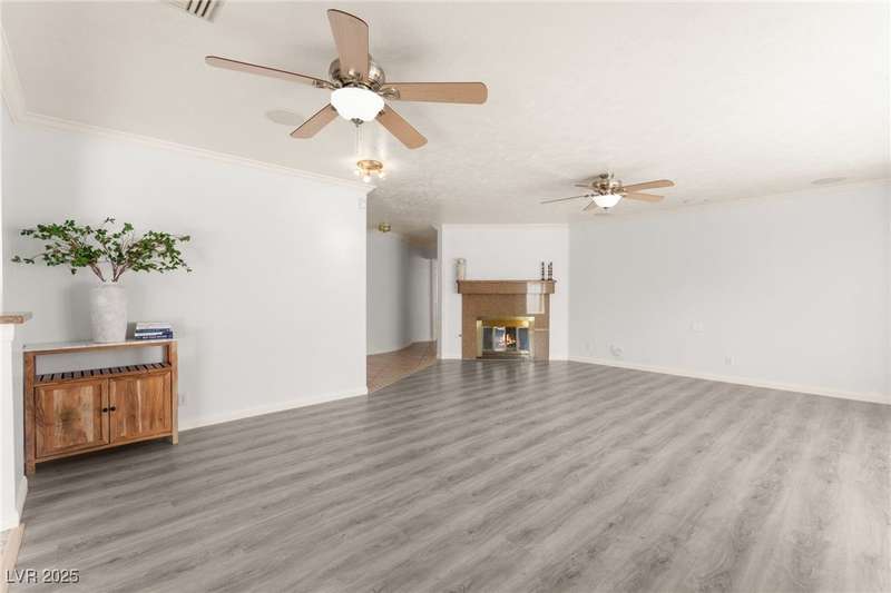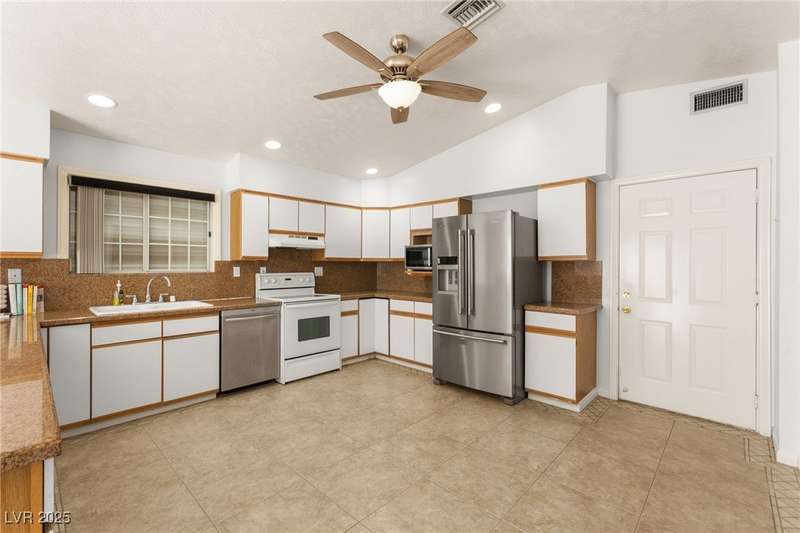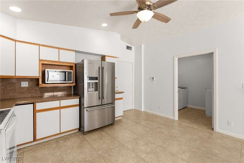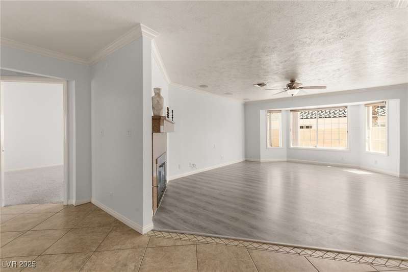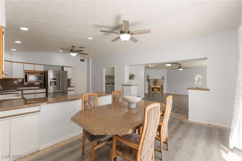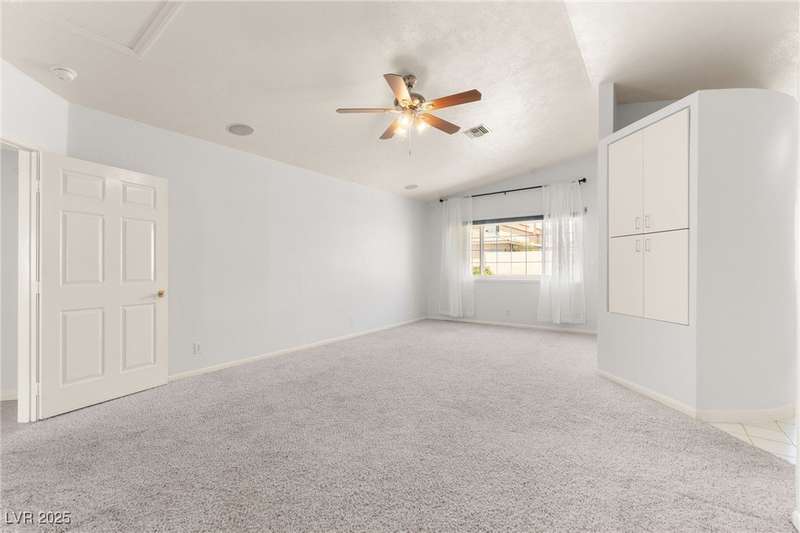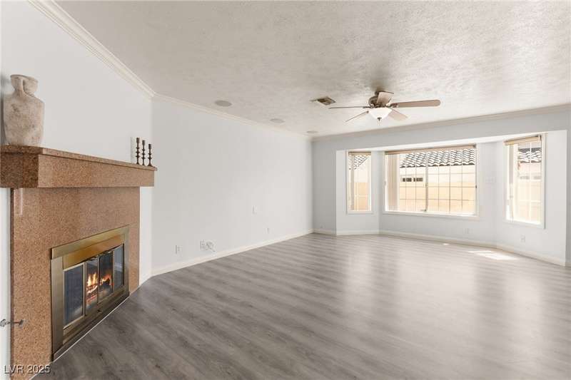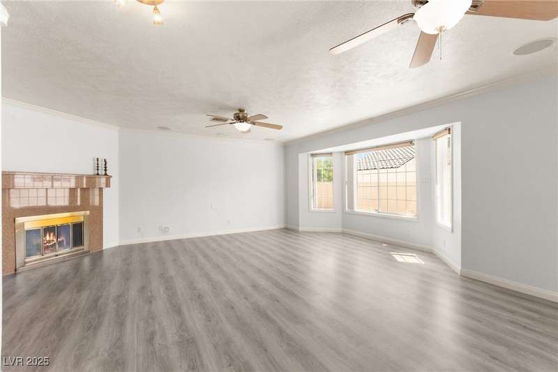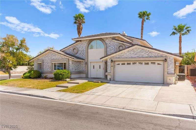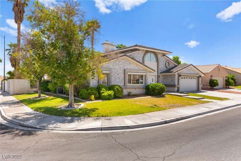 Spacious two story home on a desirable corner lot! Featuring 3 primary bedrooms with HUGE walk-in closets and 3 full baths (separate tubs & showers), this gem offers comfort and style. Enjoy the convenience of no HOA, motorized window shades, and a welcoming entry foyer. The home boasts vinyl, tile, and carpet flooring, plus 2 gas fireplaces in the family room and a primary bedroom. The kitchen is a chef’s delight with granite countertops, a breakfast bar, and all appliances included. The first floor laundry room adds ease to daily living. Outside, a lush green lawn enhances curb appeal, while the low-maintenance backyard is perfect for relaxation. Located near Summerlin, this home is just minutes from Downtown Summerlin, the freeway, and more!
