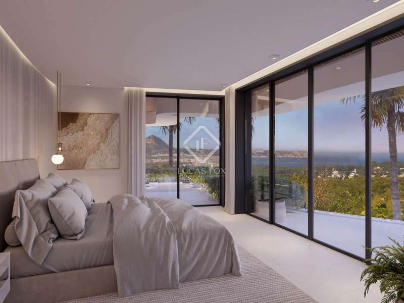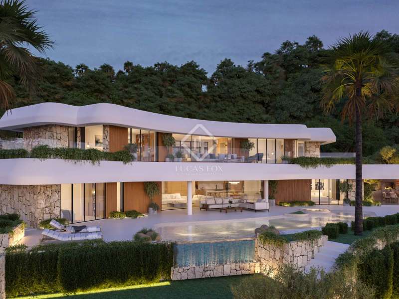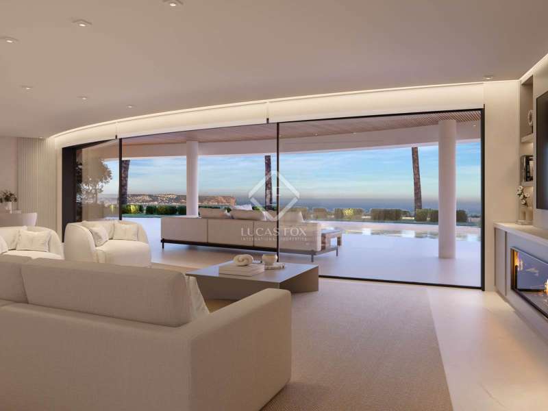 The project for this luxurious, modern villa is located in a prestigious, peaceful, residential area from where you can enjoy breathtaking, panoramic sea and mountain views. Access to the property is via an automatic gate, ensuring convenience and security. This two-level villa boasts a large private garage for at least four vehicles. The main level welcomes you into an entrance hall, with guest toilet and the open-plan living and dining area. You will immediately be mesmerized by the stunning, panoramic views of the sea and all the way across to the majestic Montgo mountain. The large glass windows and doors fill the room with natural light, giving a wonderful luminous atmosphere. A fully-equipped open-plan kitchen, with a central island, is situated next to the dining area. The heart of the home that serves as a hub for culinary adventures and social interactions. The kitchen seamlessly blends into the spacious living area. From here you have direct access out to the covered terrace, offering a further seating and dining area and the pool terrace. This house is ideal for entertaining and socialising with friends and family. Next to the kitchen is a practical laundry room and there is also a storage room and machines room. On this main level there are two double bedrooms. One bedroom has built-in wardrobes, whilst the master bedroom benefits from a fabulous walk-in wardrobe. Both bedrooms have en-suite bathrooms, ensuring comfort and privacy for family and guests. You will marvel at the stunning views from nearly every corner of this luxury property. Wake up to watch the sunrise from your bed, a masterpiece before your eyes, and relax and unwind whilst watching the beautiful sunset over the bay. From the main level, an internal staircase takes you to the upper level. A versatile space, currently designed to have two double bedrooms with bathrooms en-suite and built in wardrobes. There is a large central living and dining area between these two bedrooms, as well as private outdoor terraces. An ideal space for guests or extended family members. The current design of the home can still be amended to meet the needs of a buying client, and further bedrooms can be added should you wish. On the main level of the home you have direct access out to the pool terrace from where you can enjoy the most stunning open sea and mountain views. The infinity swimming pool is inviting, and the terrace has plenty of space for sun loungers. There is also a fabulous summer kitchen and barbecue. The garden is easy maintenance with Mediterranean plants. The construction of this superb, luxury property will begin in 2025, using top quality materials. From nearly every room in the home, you can enjoy breathtaking views of the beautiful sea and the majestic Montgo mountain. Behind the home is a designated green zone, giving a peaceful atmosphere. Surrounded by lush greenery, you will be living in your private oasis. Nestled in an idyllic location, this stunning residence redefines sophisticated living with its remarkable design and high-end finishes. Contact us for more information and to add your personal touch to the design of this fabulous property.