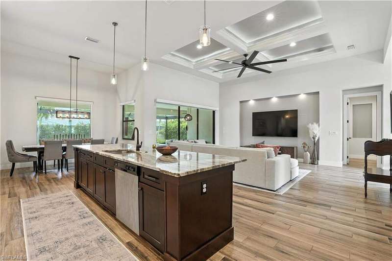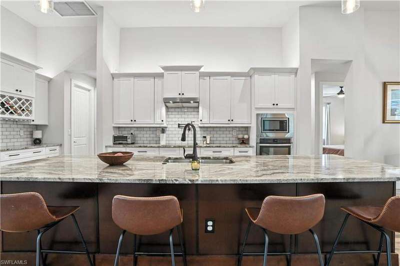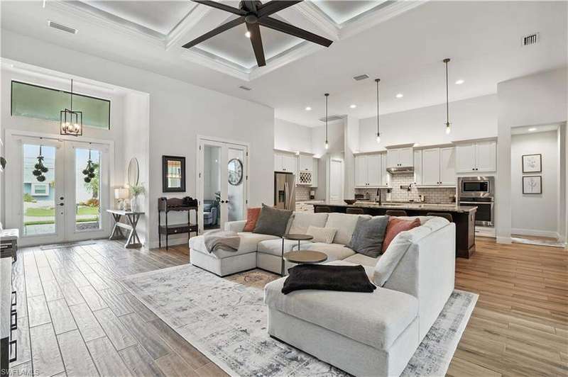 This like-new Cayman model is located in a quiet, family-friendly neighborhood in desirable Southwest Cape Coral-just minutes from Cape Harbour and downtown Cape Coral, offering easy access to shopping, dining, and all the great restaurants the area has to offer! Featuring over 2,200 sq ft, this home includes 3 bedrooms plus a den, 2 full bathrooms, and a 3-car garage with epoxy flooring. Interior upgrades include 6x36 wood-look plank tile throughout, wood flooring in the den, crown molding with rope lighting in tray ceilings, level 5 granite countertops, level 5 drywall finish, and stainless steel appliances. The metal roof includes a decorative cupola, and the home is equipped with underground electric and a 15kW generator hookup. The resort-style saltwater pool is the centerpiece of the extended lanai, complete with a picture screen enclosure and a full outdoor kitchen with vented hood-ideal for relaxing or entertaining. This move-in-ready home is packed with thoughtful upgrades and perfectly set up for stress-free Florida living. Schedule your showing today!