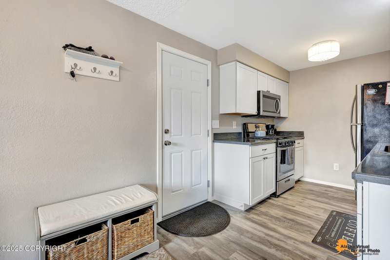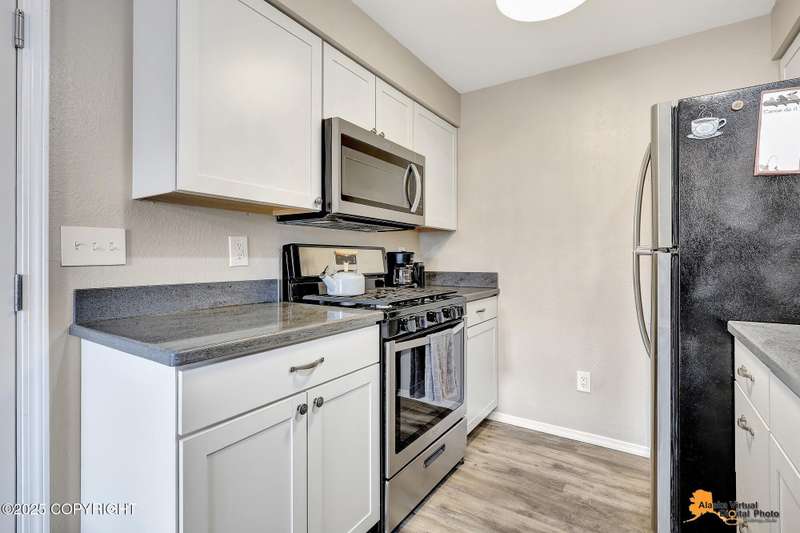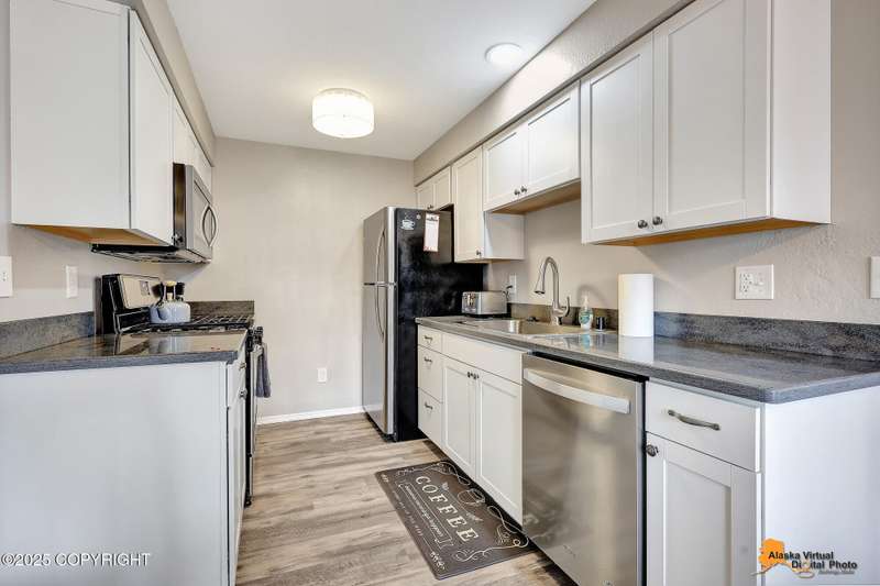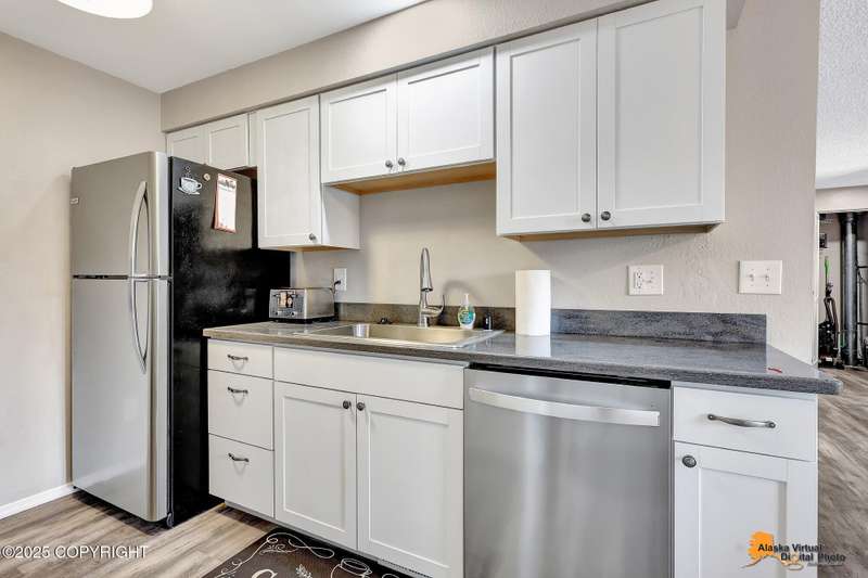 This beautifully maintained 972 sq ft ranch-style condo offers the perfect blend of comfort, convenience, and low-maintenance living. Featuring 2 bedrooms and 2 bathrooms, this desirable end unit includes both a 1-car garage and an additional carport. Enjoy the privacy of a fully fenced, south-facing Trex patio, ideal for relaxing or entertaining. Inside, the home shines with an updated kitchen in 2024 featuring LVP flooring, countertops, and cabinets. There is also stainless steel appliances in the kitchen. Additional updates include new LVP flooring throughout, a garage door opener (2024), and a roof scheduled for replacement in 2025. The primary bedroom offers a private en-suite bath. Located in a convenient midtown location with dues that cover exterior and grounds maintenance, trash, water, sewer, and snow removal. Whether you're a first-time home buyer, downsizing, or looking for easy single-level living, this move-in-ready home checks all the boxes!