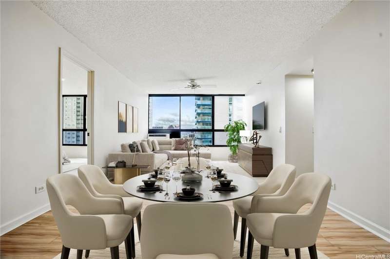 Beautiful, Clean, & Move-in Ready 2-BEDROOM 2-BATH unit with high ceilings. Own a high floor oasis in the sky at popular Royal Capitol Plaza with coastline, Downtown, & mountain views in the heart of desirable Kakaako! This is one of the best values available in one of Honolulu's most popular neighborhoods and features a spacious layout including updated kitchen appliances, reglazed bathtubs, new luxury vinyl plank flooring, new carpet, new window a/c, new lighting, & one covered parking stall. Located in a well-maintained, amenity-rich building featuring a salt water pool, exercise room, sauna, jacuzzi, storage, on site-security, guest parking, fire sprinklers, car wash space, porte-cochere, and more. Close to excellent shopping, restaurants, medical facilities, beaches & parks, Downtown Honolulu, Ward, & Ala Moana Center! Live, work, and play ... own this piece of Hawaiian paradise today!