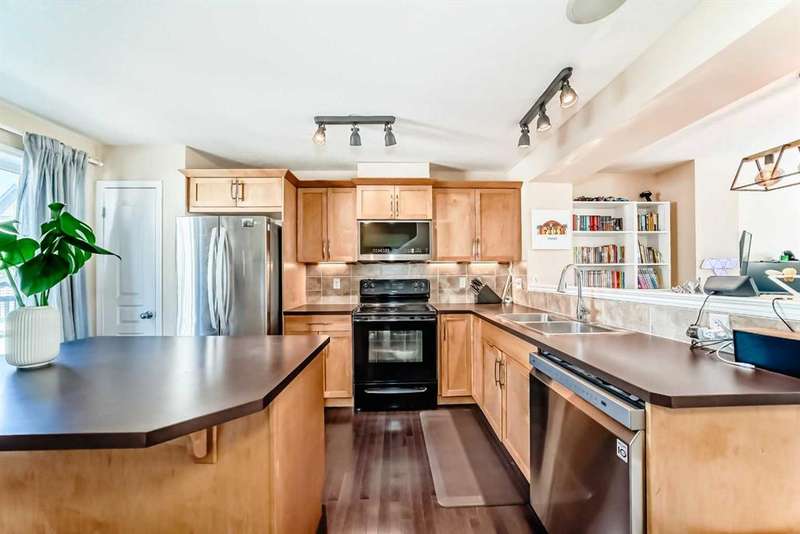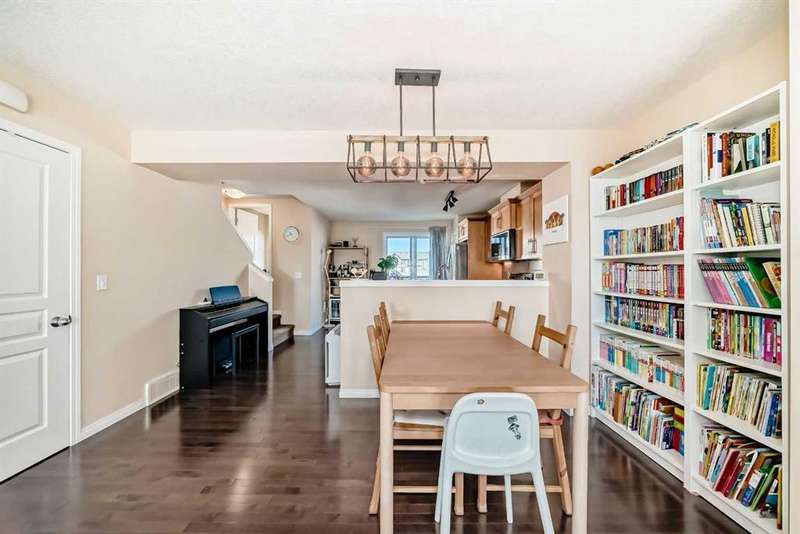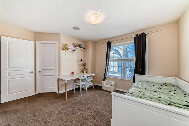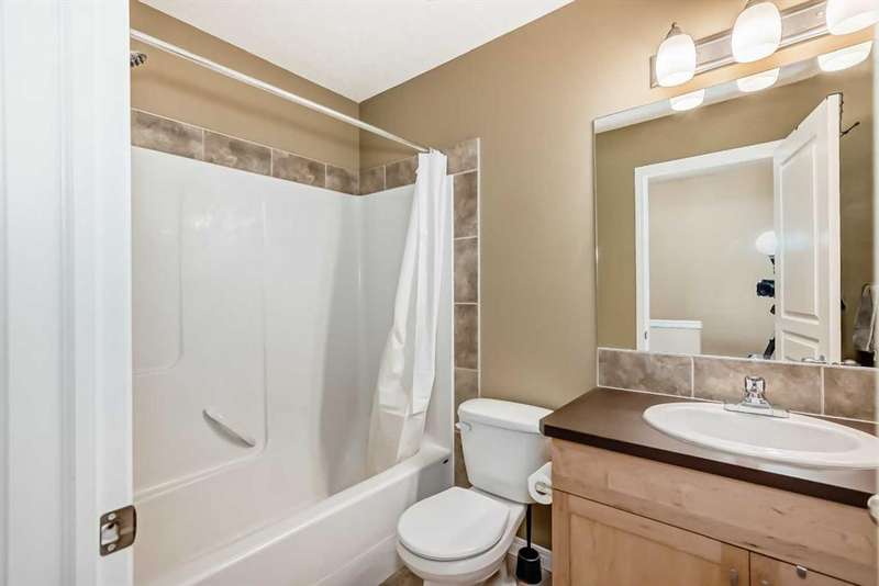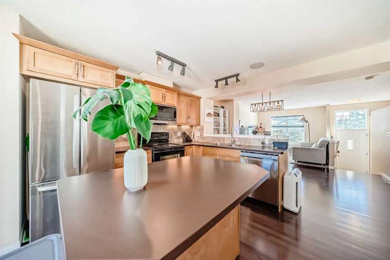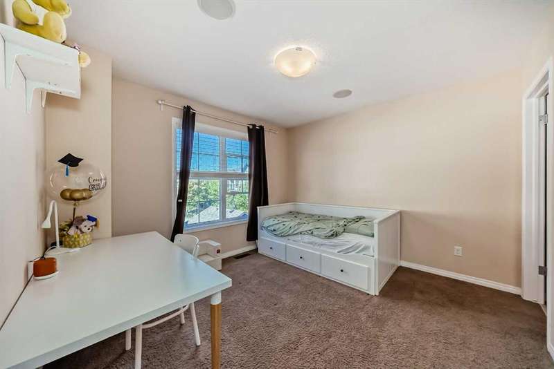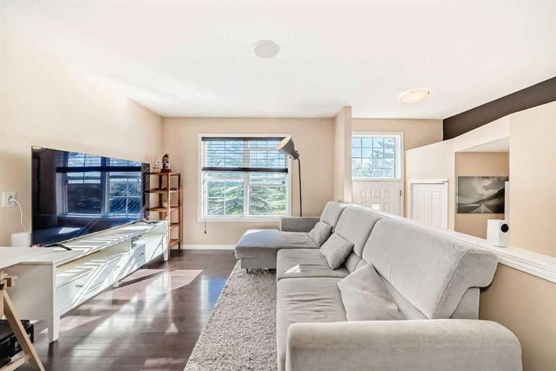 Welcome to 210 Cranford Court SE – a lovely, air-conditioned three-bedroom unit in the Mosaic Cranston Complex that fronts directly onto GREENSPACE! The open concept main floor is bright and airy, featuring hardwood floors and an abundance of natural light. The kitchen offers plenty of counter space, a built-in microwave, a corner pantry, and additional storage under the stairs. Sliding doors off the kitchen lead to a sunny balcony, perfect for enjoying morning coffee. A convenient powder room is tucked neatly just off the staircase. Upstairs, the primary bedroom boasts a walk-in closet and 3-piece ensuite. Two additional bedrooms and a 4-piece bath complete the upper level. The basement provides utility and storage space with washer and dryer. Outside, the fenced front yard with low-maintenance landscaping offers a welcoming patio and unobstructed east-facing views. This home comes equipped with BUILT-IN SPEAKERS, CENTRAL AIR CONDITIONING and a NEW 80-GALLON HOT WATER TANK, UPGRADED the REFRIGERATOR, DISHWASHER, MICROWAVE HOOD FAN, LIGHTING FIXTURES, AND FRESHLY PAINTED GARAGE AND FRONT DOOR, ensuring a modern and well-maintained space for the next owners. Located in the wonderful community of Cranston, within walking distance of schools and retail/grocery. Nearby amenities include the Brookfield YMCA, Cineplex VIP Cinema, the South Health Campus, and just a short stroll to the Cranston Residents' Association offering a fitness center, skatepark, tennis courts, skating rink, splash park, and much more. Book your showing today and make this beautiful home yours!