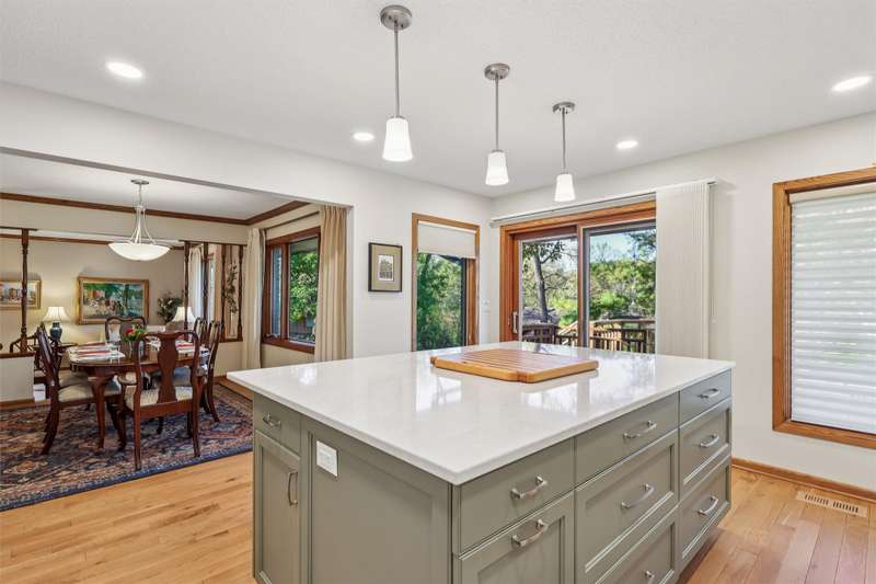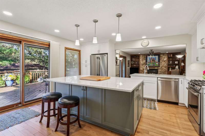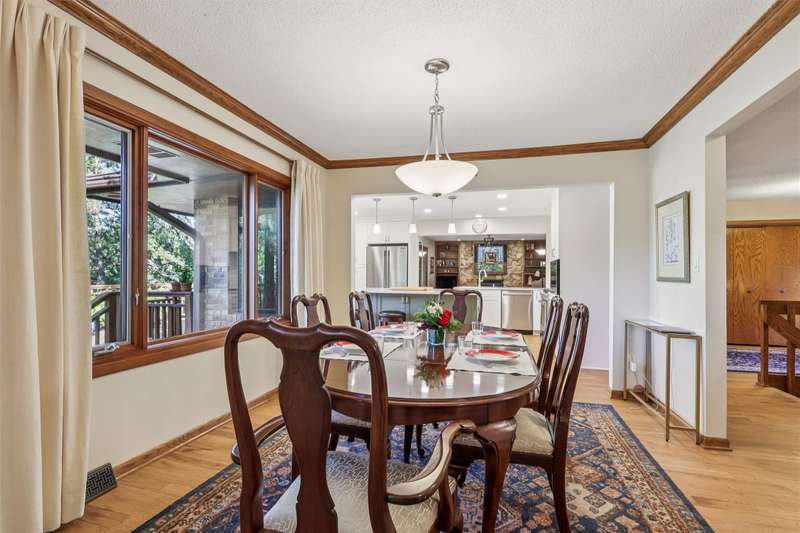 Looking for a well-cared-for home in a peaceful neighborhood surrounded by mature trees? This beautifully landscaped walkout ranch offers the perfect blend of privacy and convenience. The charming gate entry sets the tone, and once inside, the spacious foyer provides a warm welcome. The updated kitchen is a chefs dream, featuring a large island ideal for entertaining or baking your favorites, abundant cabinet space, SS appls, tiled backsplash & pantry w/ convenient built-in outlets. A generous formal dining room-great for gatherings , while a cozy family rm w/ a FP & wet bar invites relaxation. Plus an addl living room offering the perfect spot for a piano or a quiet sitting area with lovely outdoor views. You can live comfortably on the main level, which also includes a large laundry room w/ extra cabinets & utility sink. Enjoy outdoor living on the large beautiful deckideal for dining or unwinding with an evening glass of wine. The deck leads down to a lower-level patio off the walkout, offering two serene spaces for morning coffee or bird watching. The finished lower level includes a spacious family room, two addl BRs, bonus room with a large closet, bath, and a hobby room with direct access to ample storage. Impeccably maintained with thoughtful updates: HVAC (2024), LeafGuard (2019), Roof (2018), and updated Pella windows. Move-in ready and close to shopping, parks, golf, restaurants, and the airport. This ones ready to welcome you home!