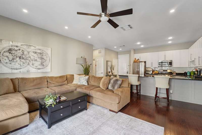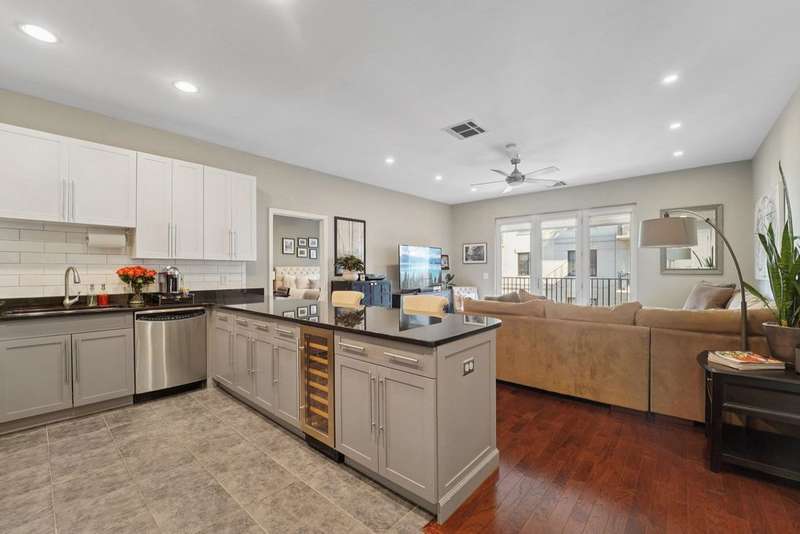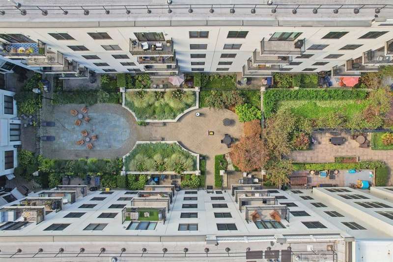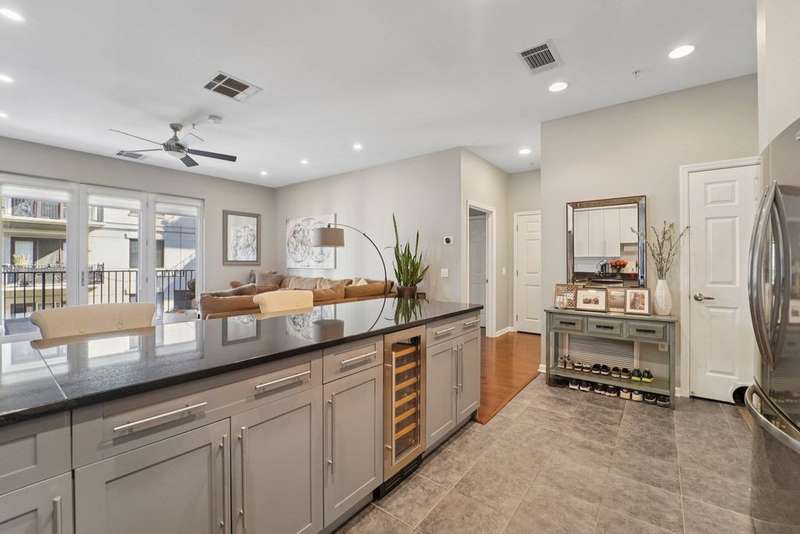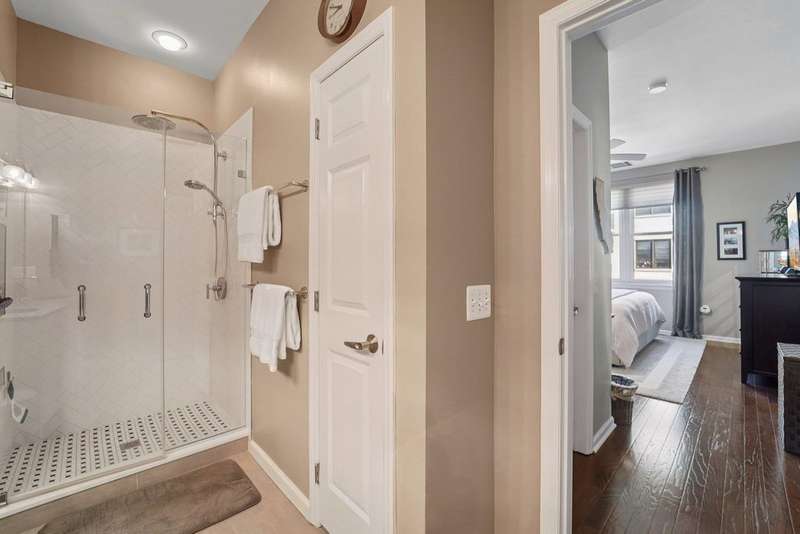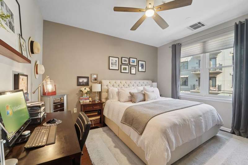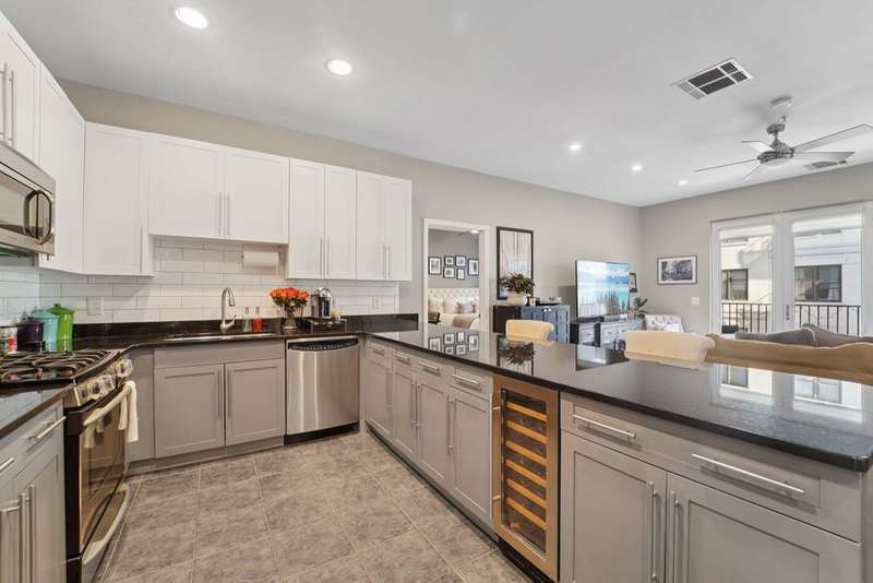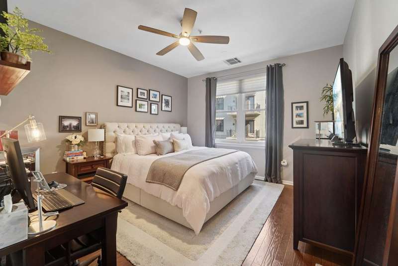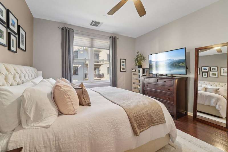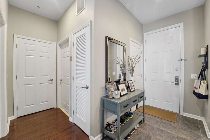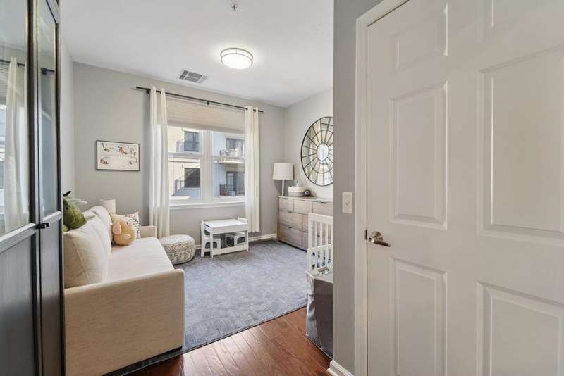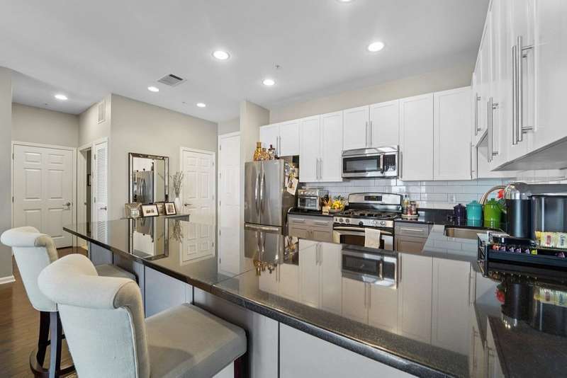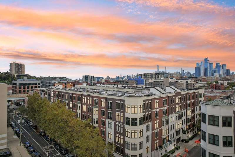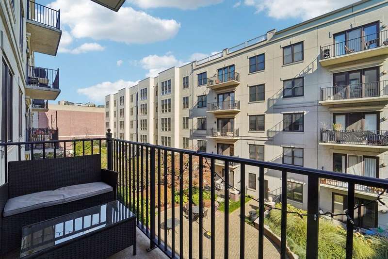 Welcome home to this rarely available and highly sought-after Upper Grand home. This East-facing, peaceful courtyard view condominium is flooded with morning sunlight. It features 9.5' ceilings, oversized windows, and gleaming wood flooring throughout. Unit 406 is renowned for its exceptional use of space and its open-concept living area. This generously sized 1,100 square foot home boasts a beautiful and functional kitchen with an abundance of shaker cabinetry, granite countertops, a subway tile backsplash, a built-in wine refrigerator, stainless steel appliances, and an enormous peninsula with seating. The primary suite features a king-sized bedroom, a custom walk-in closet, and a classically designed and recently renovated gorgeous primary ensuite with a double vanity, large walk-in shower, and a linen closet. The generous guest bedroom also features its own custom walk-in closet and is conveniently adjacent to the guest bathroom, which features a 60" soaking tub and updated vanity and lighting. Other highly desirable features of this home are the beautiful window blinds, custom lighting, and ceiling fans sprinkled throughout. This home comes with a private balcony, a full-size on-site garage parking space (#64), and a large in-home washer/dryer. Unit 406, at 1301 Adams Street, is also known as 1300 Grand Street. The building has two separate lobbies, two elevators, a residents' fitness center, and a lush courtyard. The building is located diagonally across from Hoboken's Resiliencity Park and is conveniently located near the Bus, Ferry, PATH, Lightrail, highways, and Hoboken's free HOP shuttle service, which will pick you up on the corner of 13th and Adams and take you to and from the PATH. The neighborhood is filled with amenities, sporting options, a dog park, shops, restaurants, cafes, daycare, Trader Joe's, and a short stroll to the waterfront. You will love the North End of the Mile Square.