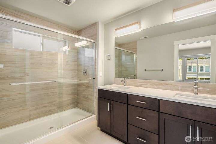 Welcome to Lake Stickney. Defining modern living at its best, this home offers a very spacious and well-designed open floorplan. Light and bright throughout, this 4bdrm, 3.5bth home backs to a green belt park like setting. Slab quartz countertops, cook's kitchen with center island, walk-in pantry, hardwoods, high-efficiency heating and AC. Master Suite with walk in closet, dual vanity, vaulted ceilings. Easy access to shopping, dining, I-5,405 & bus line.