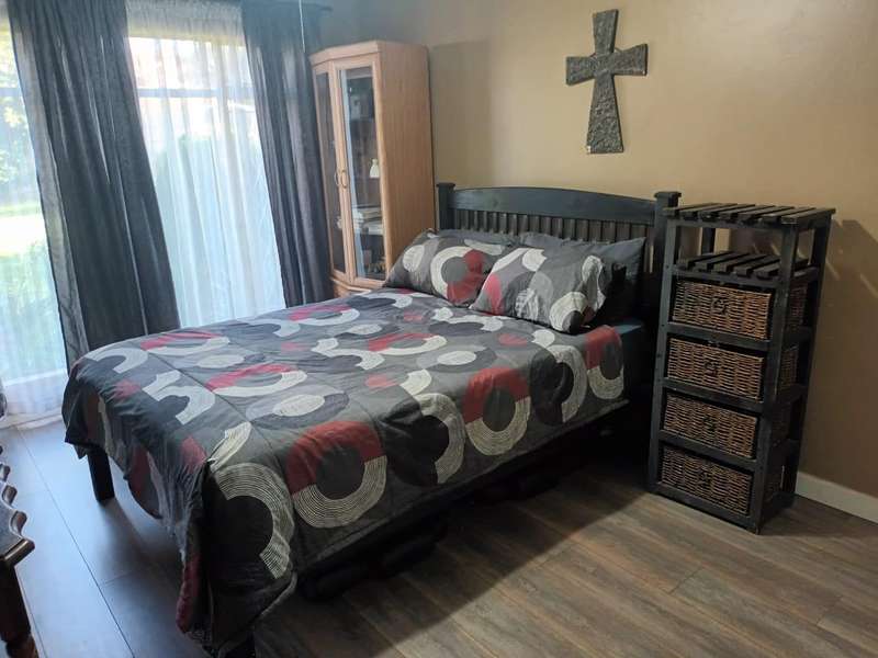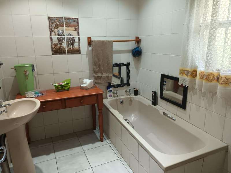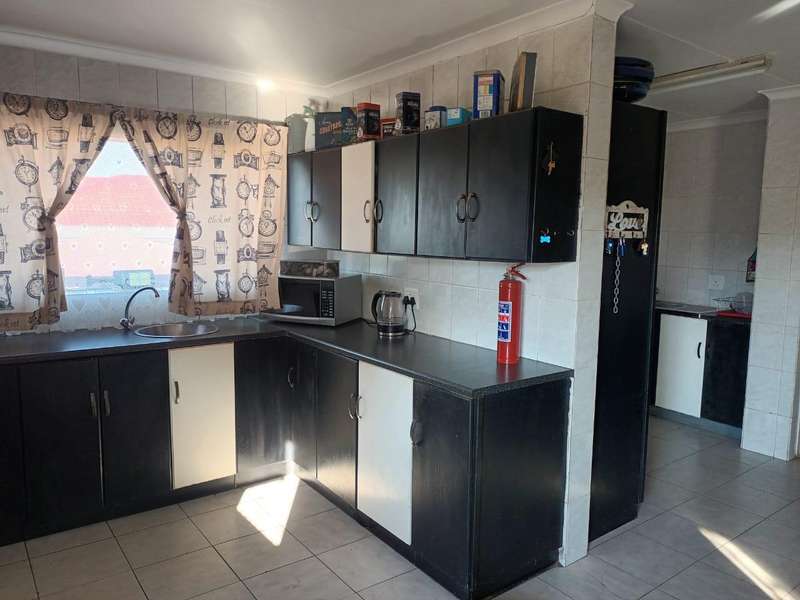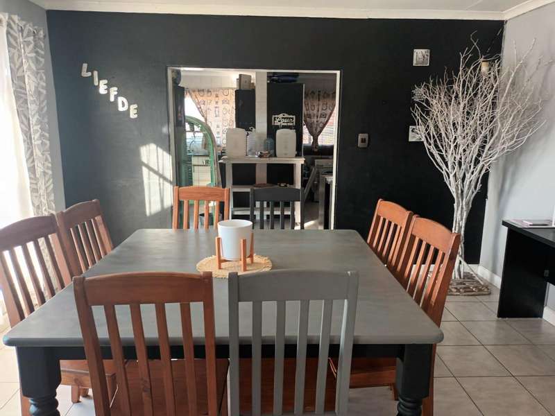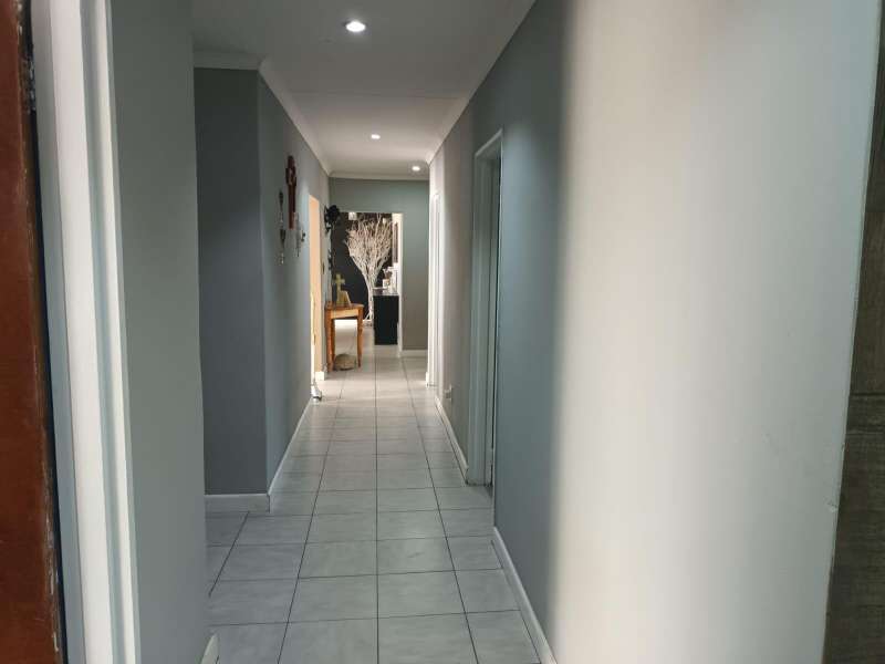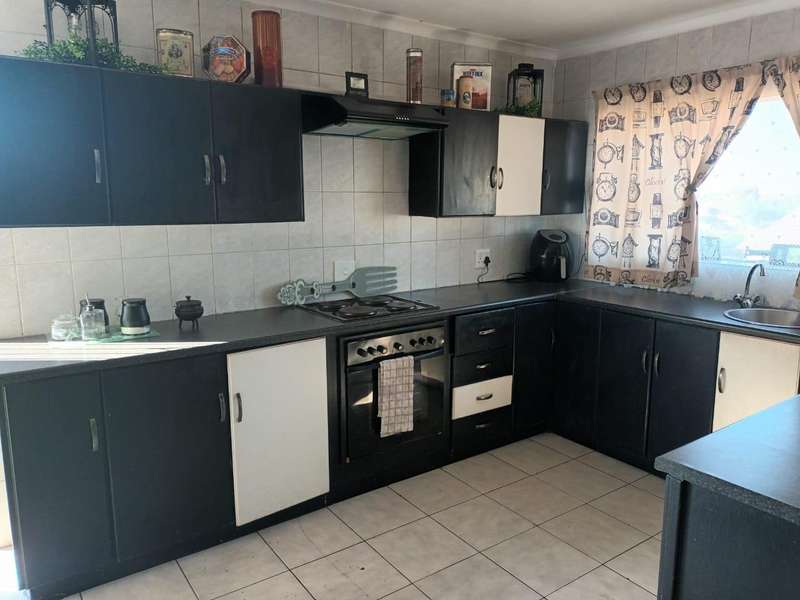 Nestled in a tranquil neighborhood, this beautifully designed home offers the perfect blend of comfort, functionality, and low-maintenance living. Boasting four generously sized bedrooms, this property ensures ample space for family and guests alike. The main bedroom features a private en suite bathroom, providing a serene retreat, while the second bathroom conveniently serves the remaining bedrooms. Step into the inviting lounge and dining room, perfect for hosting gatherings or enjoying quiet family evenings. The heart of the home is the well-appointed kitchen, offering ample cupboard space and modern finishes. The separate scullery and laundry area provide added convenience and help keep the main living areas neat and tidy. The outdoor features are equally impressive. A double garage and a carport accommodating two vehicles ensure ample parking and storage options. The patio extends your living space outdoors, offering the perfect setting for relaxation or entertaining, all while overlooking the established garden. Fully pet-friendly, this home is ideal for families with furry companions. Additional features include a JoJo tank with a pump for water efficiency, a prepaid electricity system for budget control, and a comprehensive camera system for added security. This property is meticulously maintained, offering a low-maintenance lifestyle for its lucky new owners. With its thoughtful layout, modern amenities, and prime location, this home is the perfect choice for families or anyone seeking a practical and stylish living space. Don't miss the chance to make this property your own and enjoy a life of comfort and convenience.