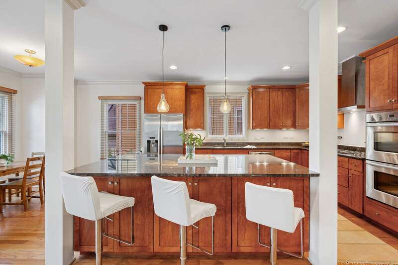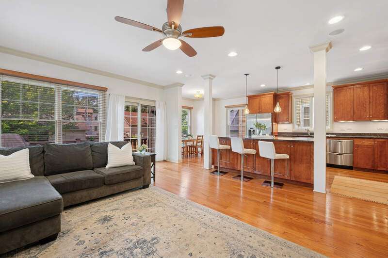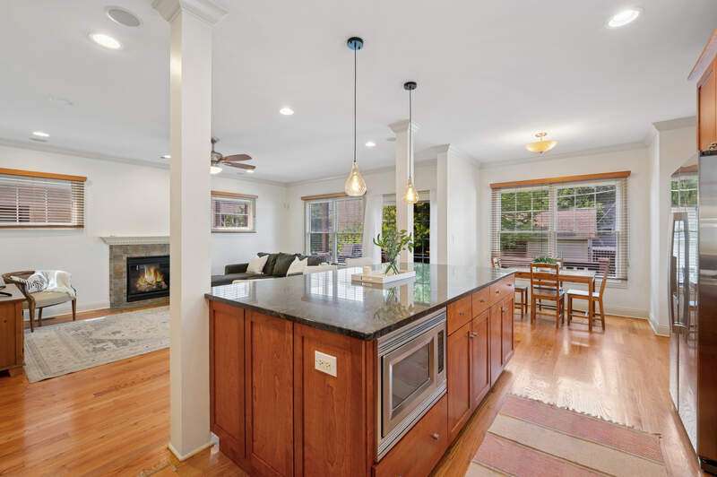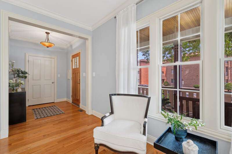 Looking for that perfect walk-to-everything home? This Forest Park home is the one! Located on an oversized lot, this newer construction home offers exceptional space, thoughtful design, and unmatched quality-inside and out. Enjoy charming curb appeal with a welcoming front porch, a large rear deck ideal for entertaining, and a fully fenced yard. Step inside to find hardwood floors throughout the main and second levels, soaring ceiling heights, and sun-filled rooms with large energy efficient windows. The open floor plan includes a formal living room and spacious dining area-ideal for entertaining of any size. Custom trim and woodwork add a refined touch throughout. The chef's kitchen is a true centerpiece, featuring custom cabinetry, stone countertops, a massive island, high-end stainless steel appliances, and an eat-in area. The adjoining family room with a cozy fireplace flows seamlessly to the rear deck-perfect for grilling and outdoor dining. Upstairs, four generously sized bedrooms each offer amazing closet space and en suite or adjoining baths for maximum convenience. The luxurious primary suite is a serene retreat, complete with a spacious bedroom, a custom walk-in closet, and a spa-inspired bath with a double vanity, soaking tub, and walk-in shower. A fully finished third level offers incredible flexibility-ideal for a fifth bedroom, home office, or recreational space. Additional features include zoned heating and cooling, surround sound, a lower level with side entrance, a mudroom, laundry room, and plenty of storage. This meticulously maintained home checks every box in an unbeatable location!