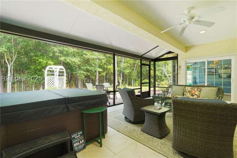 Priced to Sell!! This expanded Dogwood model in Sun City features over $76K in upgrades w/ 2 beds, 2 baths, a den & a versatile flex room (10.5 x 28), perfect for a craft room, office, or guest room. LVP flooring throughout, complemented by a fully remodeled kitchen w/ quartz counters & SS appliances, updated bathrooms & a redesigned laundry room. Located on a secluded cul-de-sac, this home offers privacy & tranquility. Enjoy the large, screened porch w/ a relaxing hot tub, ideal for entertaining or unwinding year-round. Additional highlights include a new roof (2023) & many recent upgrades. This move-in ready home is a rare find; you don't want to miss it!