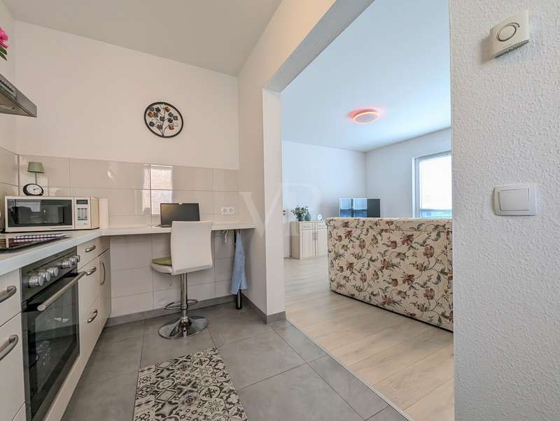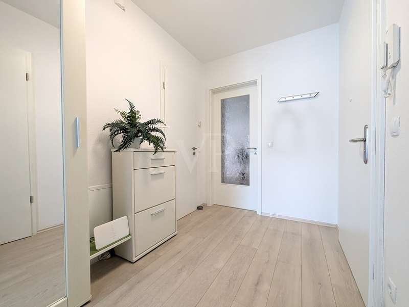 This as-new condominium combines modern furnishings with one of the most sought-after locations in the city. Just a few steps away from the Staatstheater, you live right in the city center and yet enjoy a quiet living atmosphere. A pleasantly large hallway area offers space for a wardrobe and cupboards. The inviting living area impresses with its large window fronts and offers a relaxed living atmosphere. The adjoining, bright kitchen area has a modern, as-new fitted kitchen that blends harmoniously into the modern ambience. From the living room, you have two entrances to the large, corner balcony - ideal for enjoying the sun or having breakfast and dinner in comfort. The apartment also offers a bright study and a quiet bedroom. The daylight bathroom impresses with its modern fittings, shower and bathtub. A large storage room provides practical storage options, shoes and other storage space. Large windows, some of which are floor-to-ceiling, guarantee light-flooded rooms, while the electrically operated blinds and underfloor heating in all rooms ensure maximum living comfort. The property is located in a very well-maintained building with a passenger elevator. A parking space and a garage with an electric door are already included in the offer. There is also a separate storage room for bicycles. This modern apartment is a real rarity on the inner-city real estate market and offers everything that makes for sophisticated living. The apartment is not rented and can be used for personal use or as an investment.