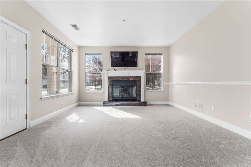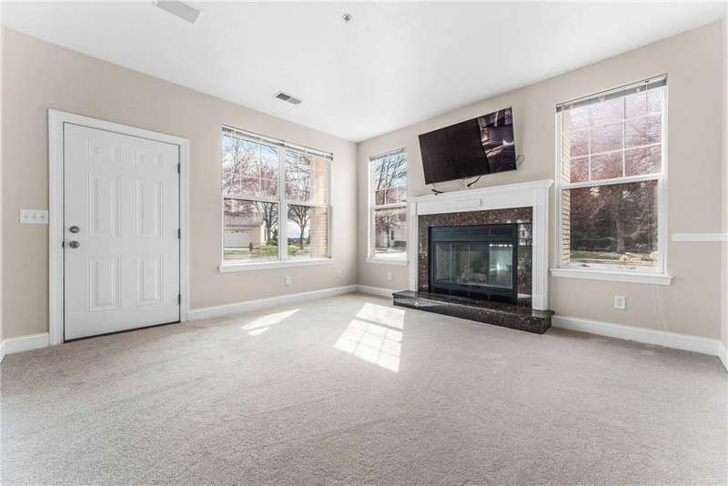 Enjoy MAIN LEVEL (yes MAIN LEVEL!) maintenance-free resort style living in Adams Pointe! This lovely, meticulously maintained two bedroom condo is in a gated community and is conveniently located across the street - mere steps away! - from the beautiful community pool! The home has been professionally painted and features newer high-end carpeting. The condo is light and bright, with plenty of windows. You'll love the home's open concept and will appreciate the large eat in kitchen with center island, perfect for entertaining. The kitchen opens to your great room with gas fireplace. Spacious laundry room offers storage and leads to your attached large one car garage. The home has two generously sized bedrooms, and the master has access to a patio and a lovely en suite with walk in shower. There is another full bathroom, with a shower/tub. Near the parking lot. Take advantage of the community amenities: pool, exercise room, theater, basketball, playgrounds, tanning, etc. Mars Schools!