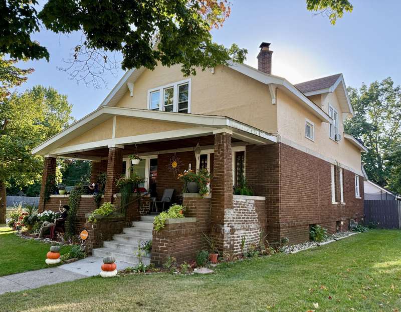 Step Back in Time with 1915 Charm! Fall in love with this beautifully preserved five-bedroom home, full of original character and timeless appeal. Built in 1915, this home showcases rich wood floors throughout, thick solid wood trim, and a grand fireplace that anchors the living space with warmth and charm. Enjoy morning coffee on the inviting front porch, or entertain in the fenced backyard-perfect for gatherings, pets, or play. The home features five spacious bedrooms, 1.5 bathrooms, and a 2-stall detached garage offering plenty of storage and parking. Newer roof and window. This home is a rare opportunity to own a piece of history with all the space and features to make it your own.