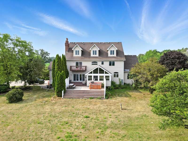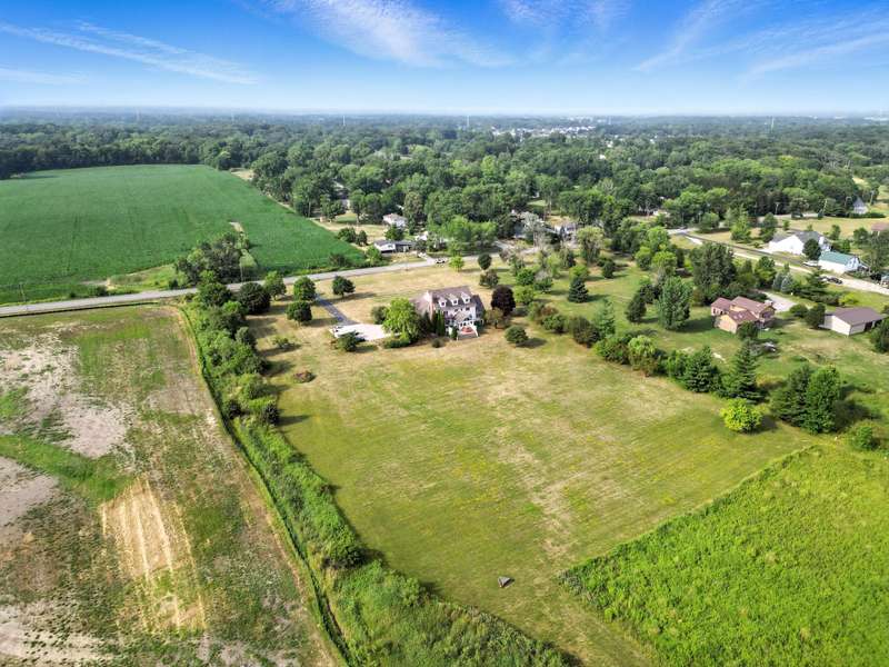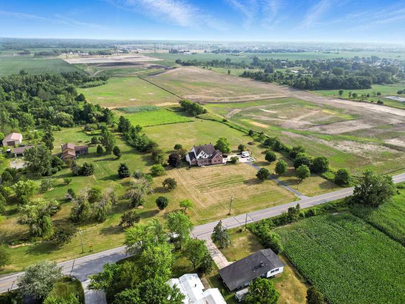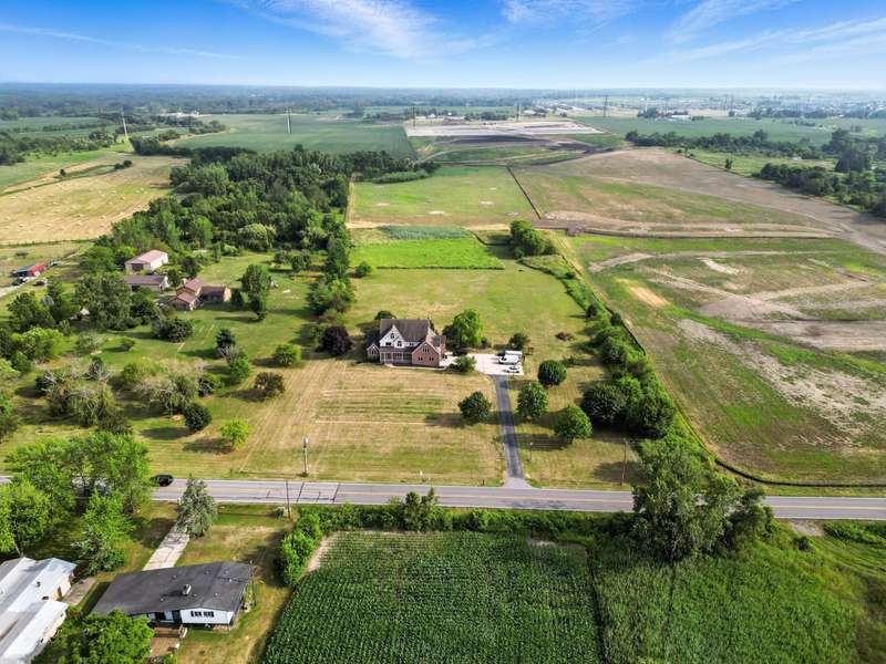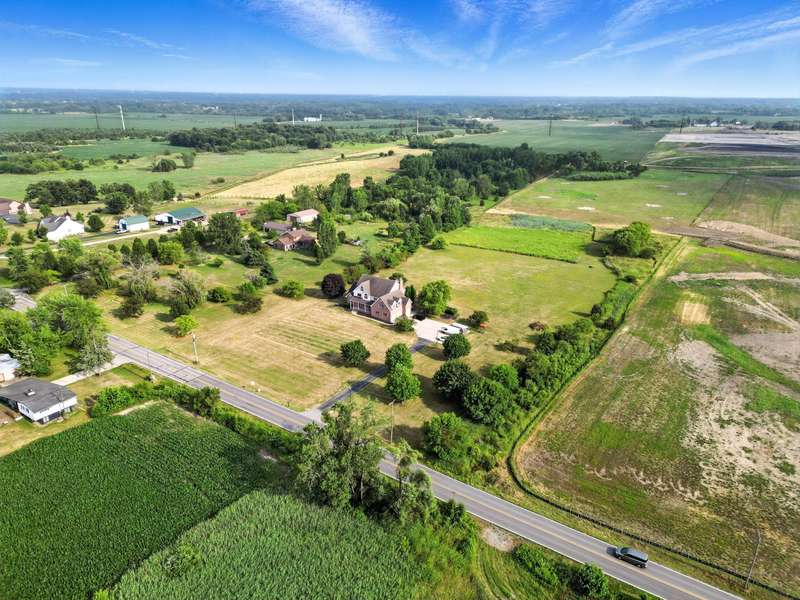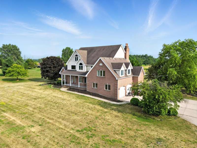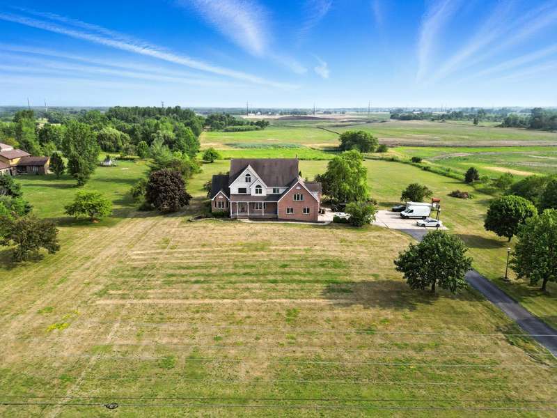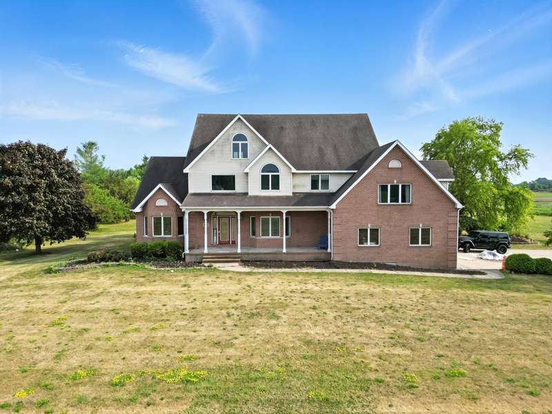 Welcome to this 7300 sq ft custom home, perfectly set on 7.1 lush acres in desirable St. John Township. Designed with space and comfort in mind, this one-of-a-kind property offers a grand formal living and dining room, a spacious kitchen with granite counters and stainless steel appliances, and a sun-drenched four-season room with southern exposure. The inviting living room features a wood-burning fireplace, creating a cozy gathering place at the heart of the home. Beautiful oak staircases add timeless character, and a stairway from the finished basement to the garage adds convenience and accessibility. Upstairs expansive primary suite features private balcony, fireplace, walk-in closet and ensuite bath. With 6 additional bdrms, a loft with guest suite, there's room whether you are hosting, working from home, or simply enjoying the space. Additional highlights include 3-car sideload garage, low property taxes, and a peaceful location with quick access to Illinois. This is a rare opportunity to own a stately home on acreage in one of the area's most sought-after communities.