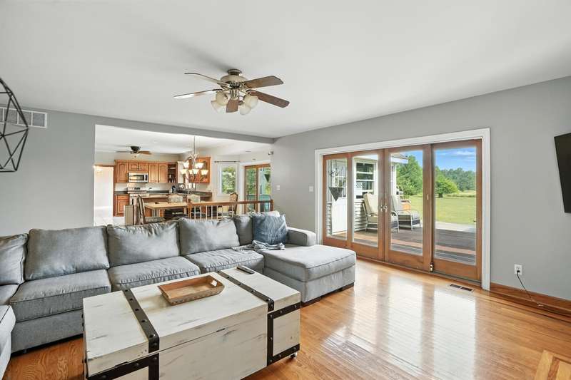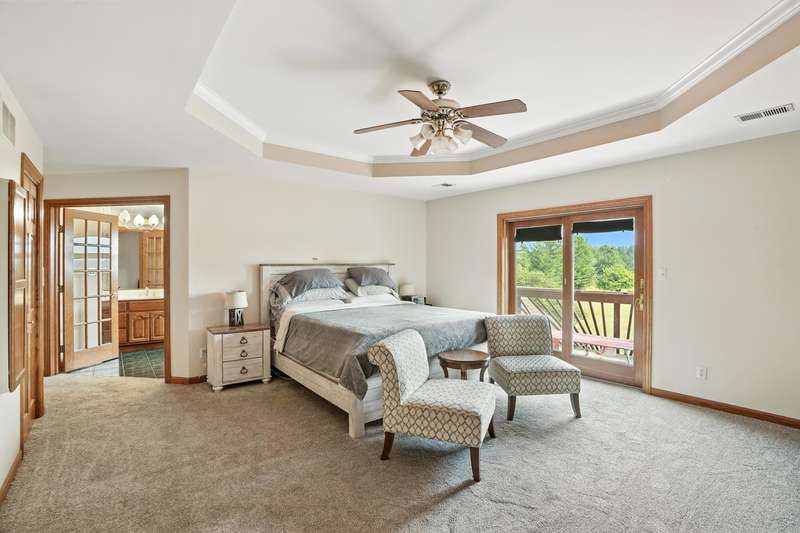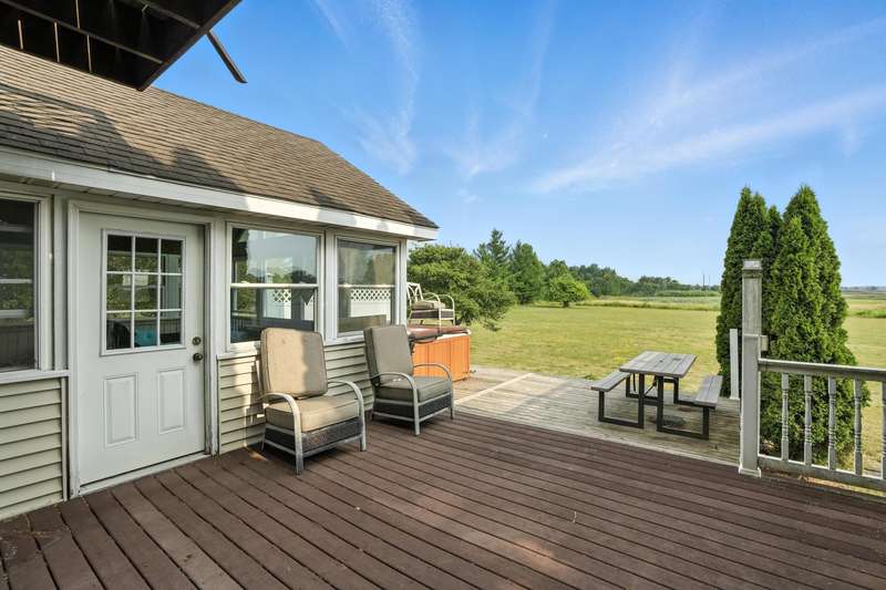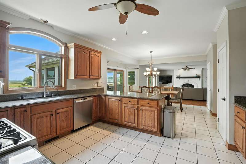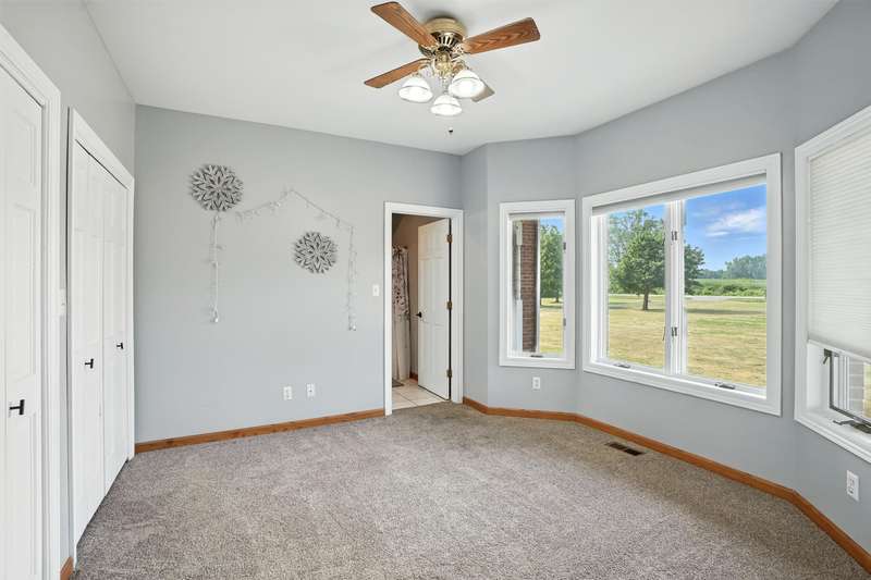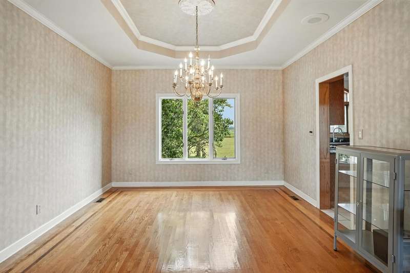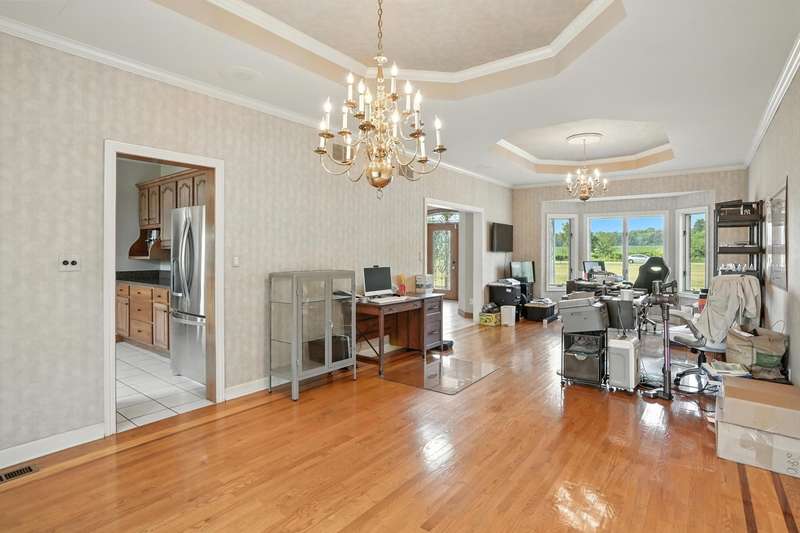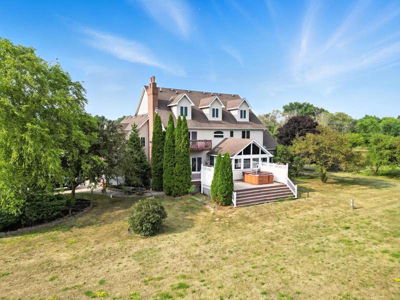 Welcome to this 7300 sq ft custom home, perfectly set on 7.1 lush acres in desirable St. John Township. Designed with space and comfort in mind, this one-of-a-kind property offers a grand formal living and dining room, a spacious kitchen with granite counters and stainless steel appliances, and a sun-drenched four-season room with southern exposure. The inviting living room features a wood-burning fireplace, creating a cozy gathering place at the heart of the home. Beautiful oak staircases add timeless character, and a stairway from the finished basement to the garage adds convenience and accessibility. Upstairs expansive primary suite features private balcony, fireplace, walk-in closet and ensuite bath. With 6 additional bdrms, a loft with guest suite, there's room whether you are hosting, working from home, or simply enjoying the space. Additional highlights include 3-car sideload garage, low property taxes, and a peaceful location with quick access to Illinois. This is a rare opportunity to own a stately home on acreage in one of the area's most sought-after communities.