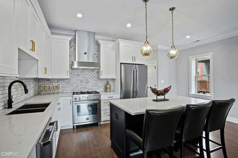 This amazing boutique newer construction residence offering 1,500 sq. ft. of sophisticated living on a charming, tree-lined street. Inside, you'll find stained hardwood floors, curated designer lighting, and custom millwork throughout. The open-concept living and dining area flows seamlessly onto an east-facing balcony, perfect for morning coffee or evening relaxation. The chef's kitchen showcases shaker and flat-panel cabinetry, quartz countertops, a full backsplash, and premium Bertazzoni appliances, making it a true entertainer's dream. The primary suite feels like something out of a magazine, featuring a spacious walk-in closet and a spa-caliber bath with a massive glass shower that includes dual adjustable showerheads and a rainfall feature. Heated floors and a dual vanity complete the experience, offering both comfort and luxury. A large laundry and mechanical room adds convenience, while a smart intercom entry system, high-efficiency furnace, and tankless water heater ensure efficiency and comfort. Private garage deck space is included, and the rental price also covers internet and garage parking for added value and ease. Located just a short walk from Pete's Fresh Market, the Blue Line, and the Illinois Medical District, and only minutes from the heart of the West Loop, this home offers the perfect blend of neighborhood charm and city convenience.