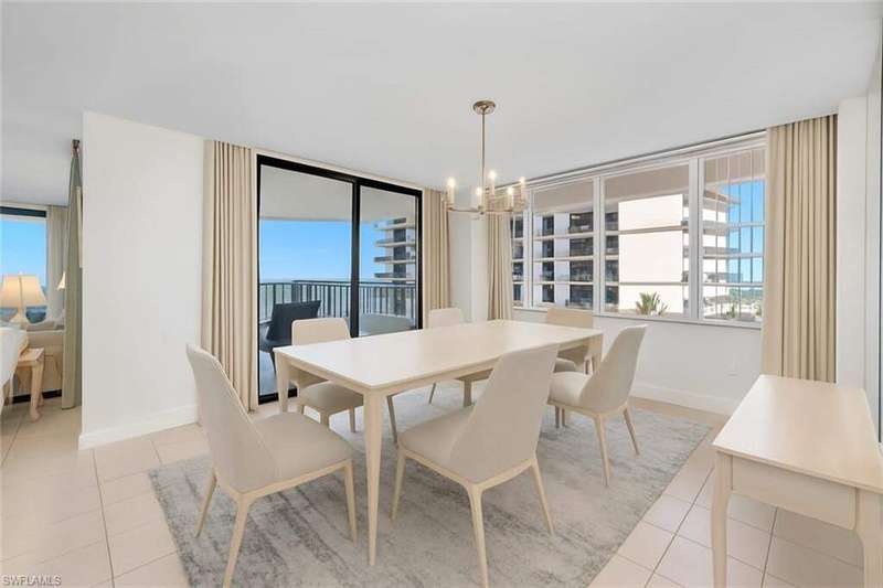 Welcome to one of the largest beachfront residences in the highly sought-after Summit House of Marco-an entertainer's delight and a must-see! This exquisite 2-bedroom + den, 3-bathroom coastal retreat (with a den that can easily be converted into a third bedroom) offers spectacular coastal living with sweeping panoramic views of the Gulf, Marco Island, and Naples. Designed for both comfort and style, the open-concept layout invites effortless entertaining while framing year-round sunsets, shimmering Gulf waters by day, and twinkling city lights by night. Whether savoring your morning coffee or hosting evening cocktails, the nearly 900 sq. ft. wraparound lanai provides the perfect backdrop for every occasion. Inside, find generous ensuite bedrooms and a versatile den combine luxury with flexibility, while the residence itself has been meticulously maintained and is ready for a new owner's personal touch-making it a canvas for endless possibilities. Summit House residents enjoy premier amenities including a resort-style heated pool and spa, sauna, fitness center, BBQ area, social rooms, library, private beach access, covered garage with car wash, and on-site property management. Best of all, the JW Marriott is just a short stroll down the beach-ideal for dinner, cocktails, or an evening out. Whether as your private coastal escape or a highly desirable investment, this spectacular condo embodies the best of Marco Island living.