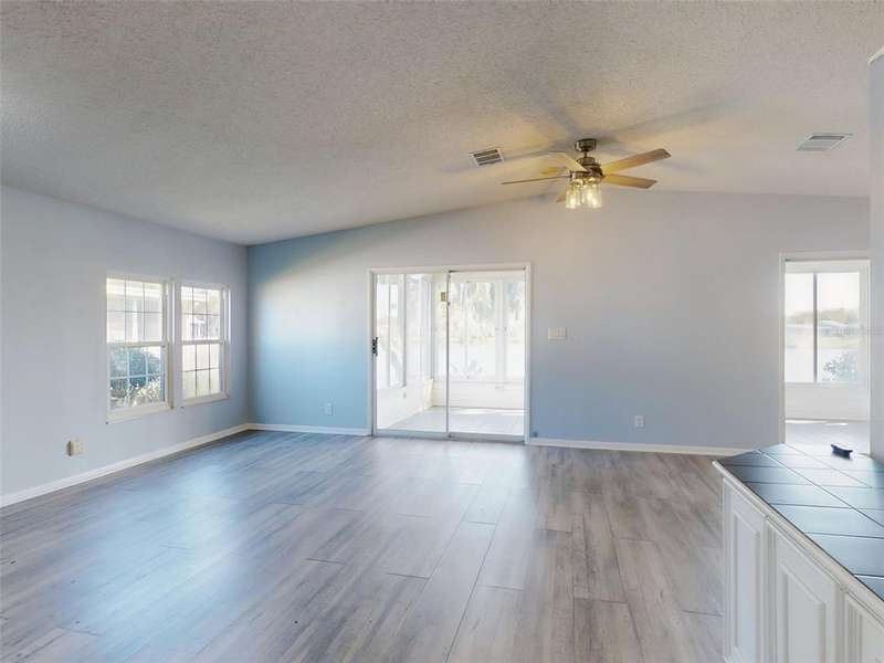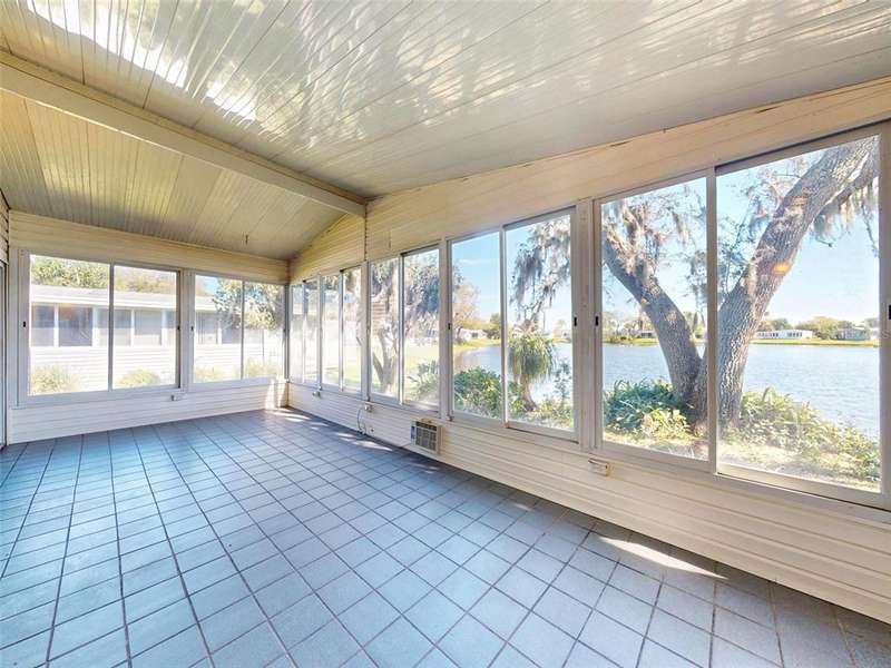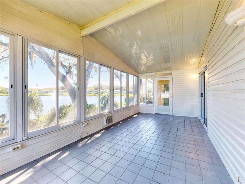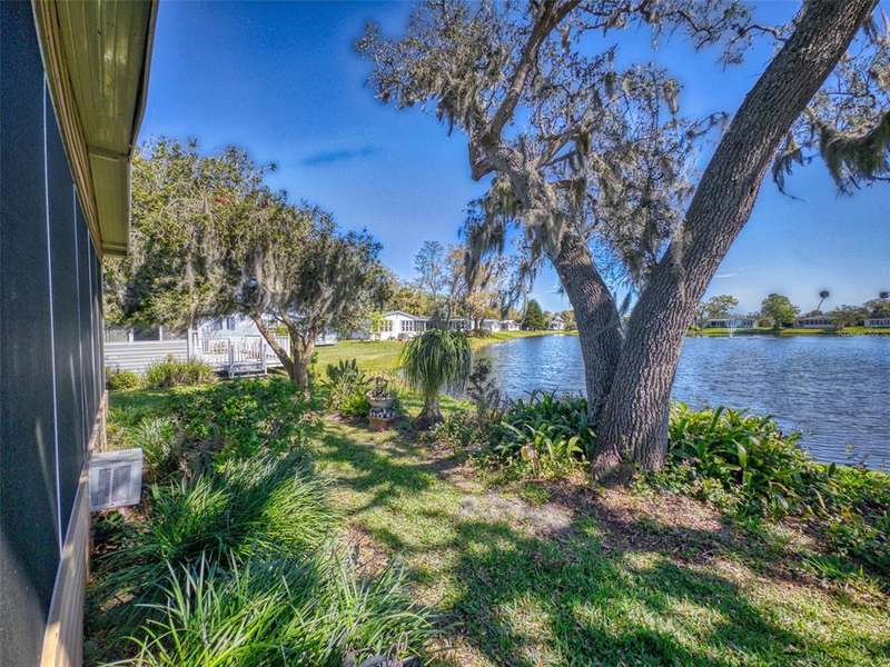 This lovely 2-bedroom, 2-bathroom home offers serene LAKEFRONT living in a peaceful and desirable location. Enjoy lake views from your glassed back porch, making this a perfect retreat for relaxation or entertaining. The home features an open floor plan with spacious rooms, providing plenty of natural light throughout. This home features an oversized 1 car garage space, covered carport and resident boat ramp on the intracoastal. NEWER ROOF. So many activities and amenities when living at Edgewater Landing, including internet, fitness center, heated pool, hot tub, tennis, pickleball, shuffleboard, bocci ball, horseshoes and bingo. This community also includes a workshop, RV, boat and kayak storage. You also own the land. Close to shops and restaurants, this lovely community has so much to offer, start enjoying today.