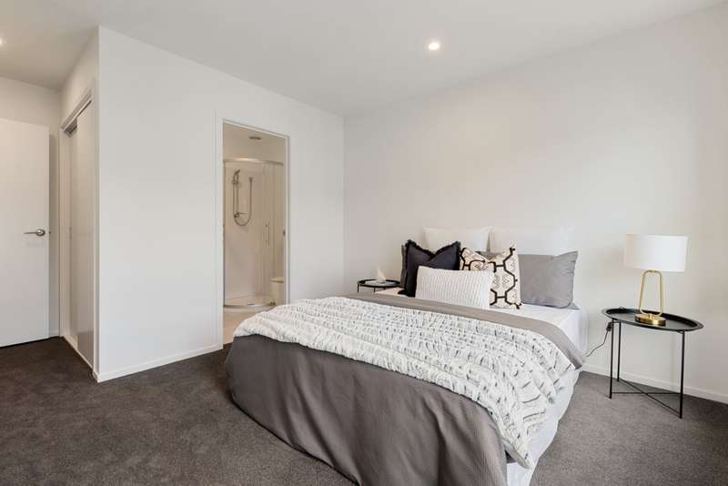 Bathed in natural light, the north-facing layout is anchored by an open-plan living space that blends relaxation and entertaining seamlessly. The sleek kitchen showcases Stonex benchtops, premium appliances including gas cooking, and a handy breakfast bar. Sliding doors extend the living outdoors, while upstairs you'll find three generous double bedrooms, each with its own ensuite complete with quality fittings and tiled finishes. A guest toilet on the ground floor, double glazing, a security system, and central air conditioning add comfort and peace of mind.
