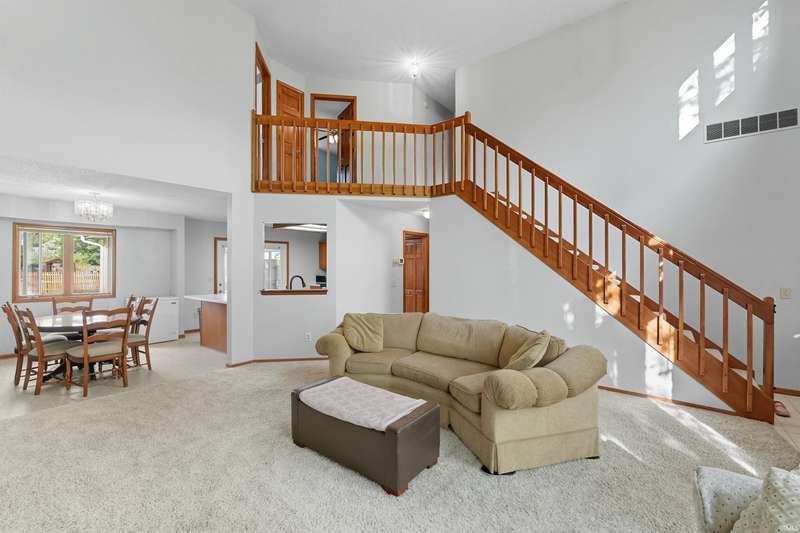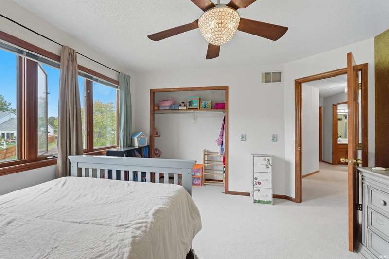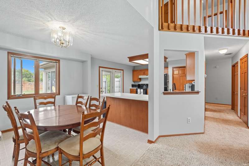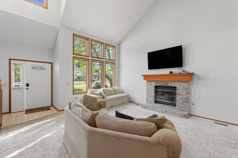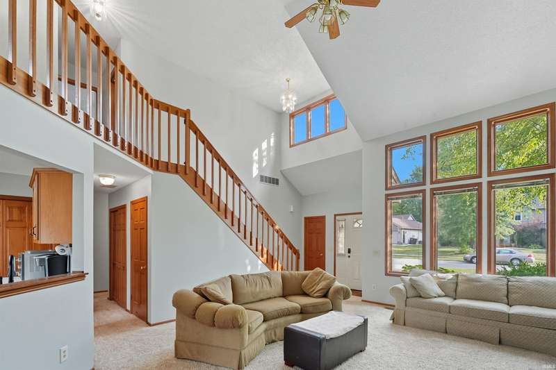 Welcome to this charming home in Northwest Fort Wayne! Featuring 4 bedrooms and 2.5 bathrooms, this home offers a bright, open living room with soaring ceilings and an upstairs hallway that overlooks the main level. The freshly washed carpet and freshly painted walls make the space feel crisp and move-in ready! The main-level primary suite includes a walk-in closet and a private bath with a beautiful tile shower, creating the perfect retreat. Enjoy a spacious kitchen and dining area, plus plenty of natural light from large windows. This home is located in the sought-after Northwest Allen County Schools district. Conveniently located near schools, shopping, and major routes, this home blends comfort, style, and functionality!