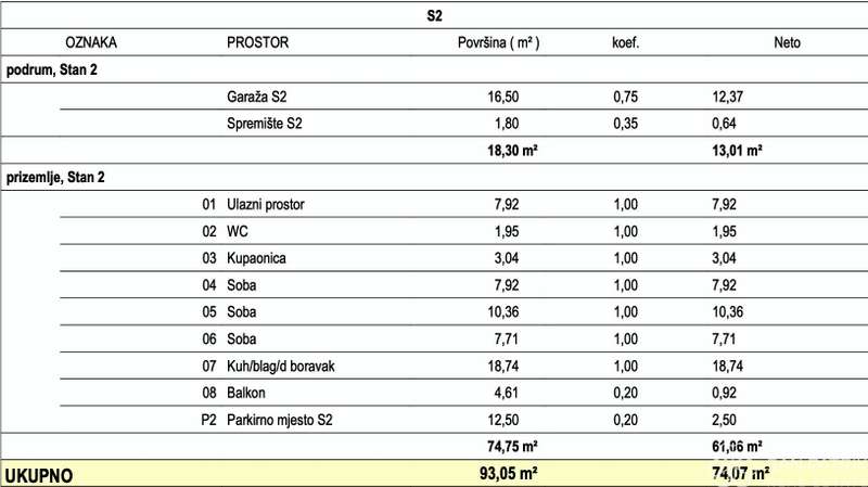 Apartment P4-S2 - ground floor (orientation South - East) - net living area 57.74 m2 (3 bedrooms + bathroom + WC) + balcony (4.61 m2) + yard (131 m2) + storage room 2 (1.80 m2) + outdoor parking space + garage parking space, total net calculated area 86.69 m2 = EUR 277,408 (VAT included)