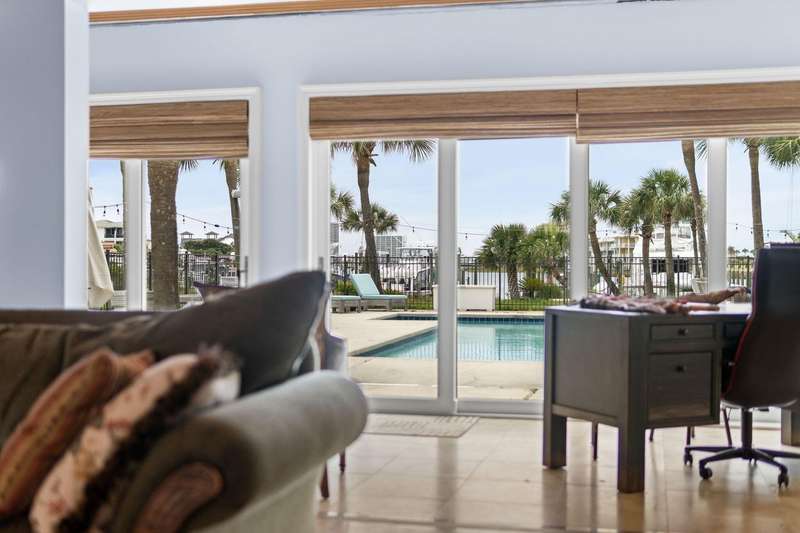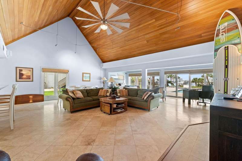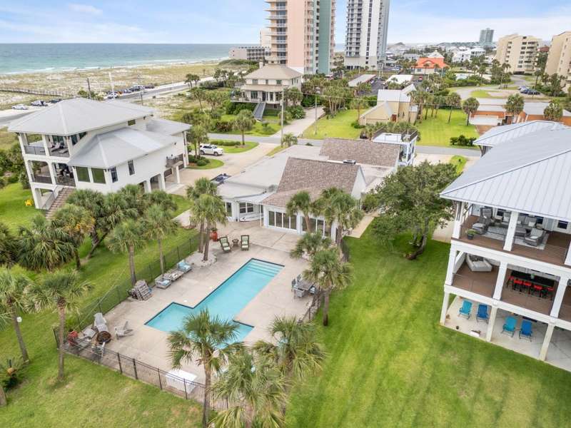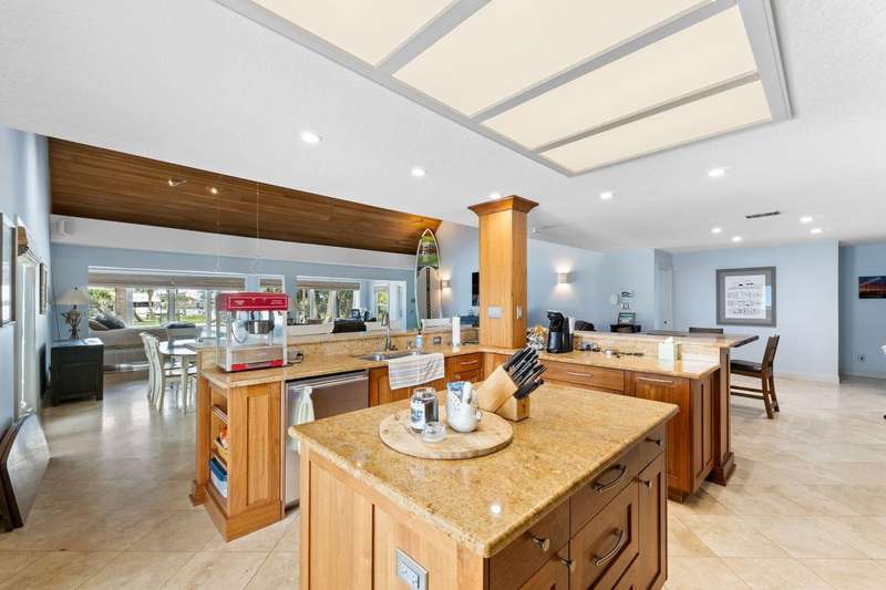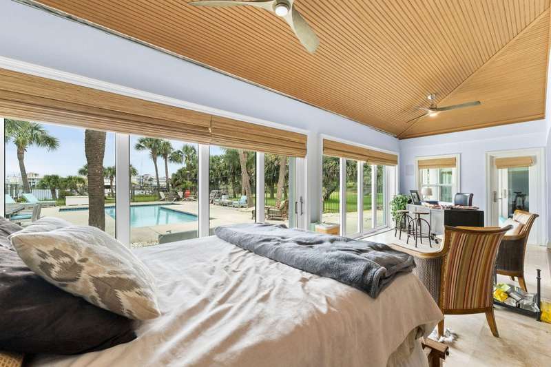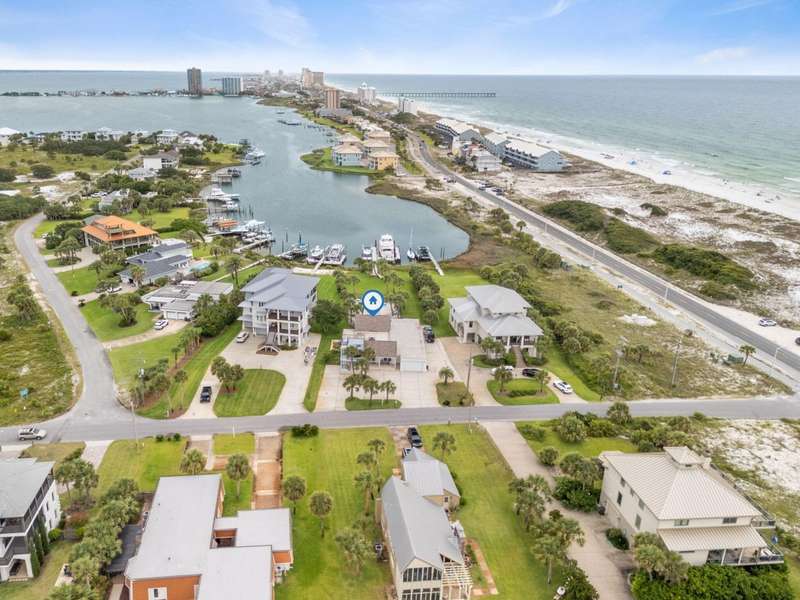 Paradise on Little Sabine Bay / DEEP WATER (11ft+) dock. This private residence features resort lifestyle living, in a coastal contemporary cottage. The private boat dock is the envy of all sport fishing and yacht enthusiast. The stellar location has exceptional appeal because of its short two minute stroll to the Gulf of America's beaches for surfing, hydrofoiling, rod fishing and shells. This original Villa Sabine property was designed to withstand hurricanes and storm surges at ground level. There are impact windows and exquisite impact storm rated triple sliders. The salt water gunite swimming pool is shaped like a T for aquatic gatherings, lap swimming and family play. Do you have an RV? There is plenty of room to park it and load out or in. Inside, you will find a spacious family room with a soaring atrium white oak custom wood ceiling. There is surround sound and LED soft glow lighting. The kitchen is professionally designed in rich walnut and is a cooks delight. Each bedroom has its own upscale bathroom with granite, custom lighting and designer sinks. All bedrooms have ample closets and storage. The open floor plan is split and the primary bedroom suite has an artisan ceiling and waterfront views of the bay and dock.The spacious master suite is 18x24 and features a triple size walk in closet complete with custom shelving and rods. The master bath has spa tub by Bain and a separate shower. There is a lifestyle gym.The extended Florida room off the living room currently has a queen size bed and is a southern sleeping porch. The home is professionally landscaped with palms and outside lighting.The custom garage features an industrial south side garage door with storage for cars, golf carts, fishing rods, tackle, beach toys, refrigeration and storage.There is a roof top crows nest to view the gulf island sunsets and the Blue Angels Air Shows. This property has had an extensive update with a new dock harboring a 67 foot yacht, Boston Whaler & water toys.