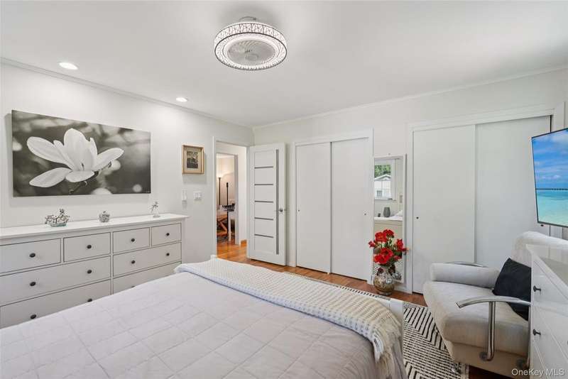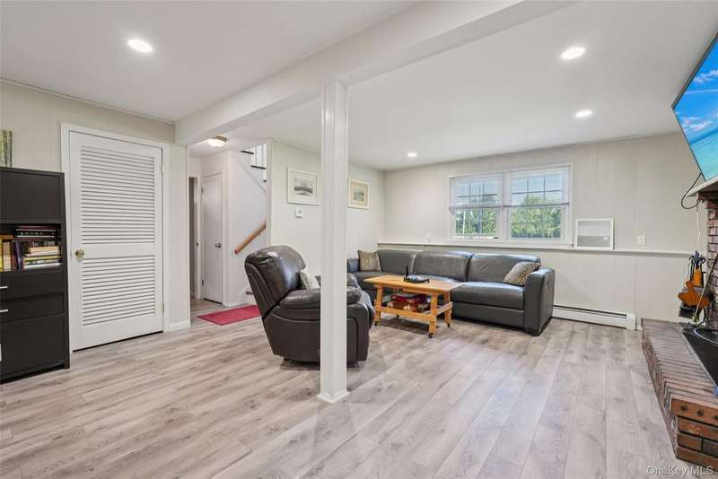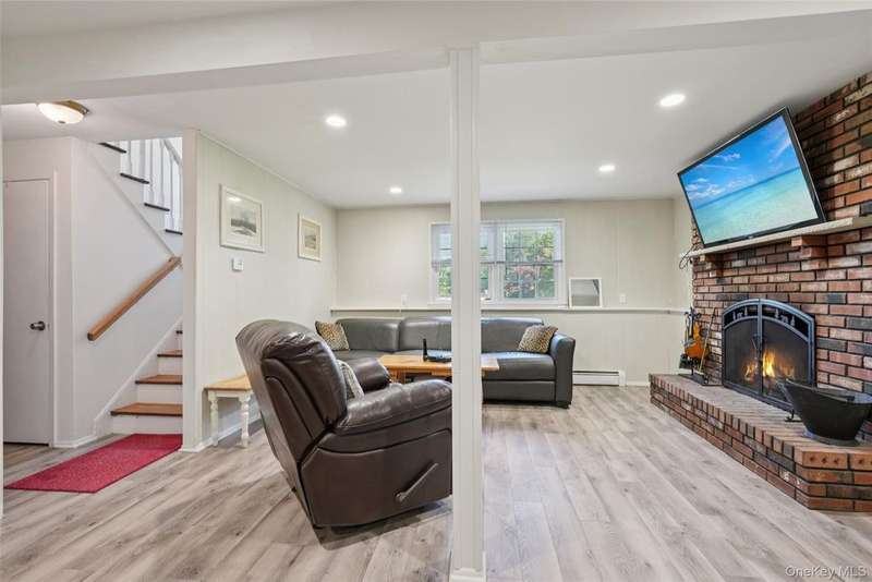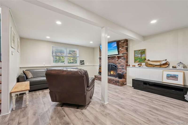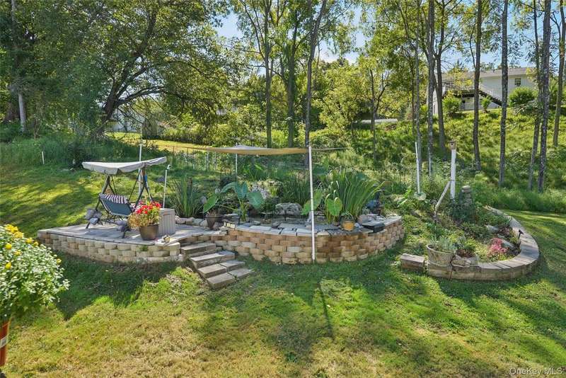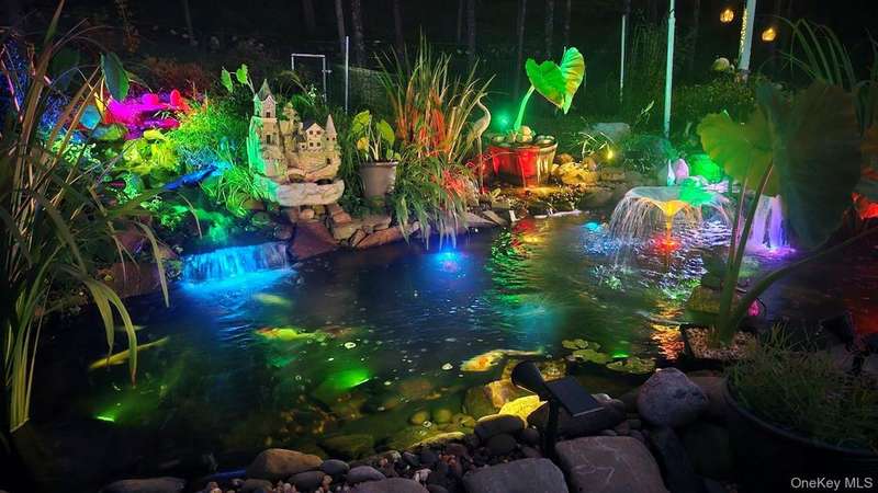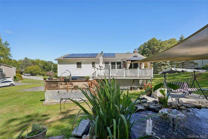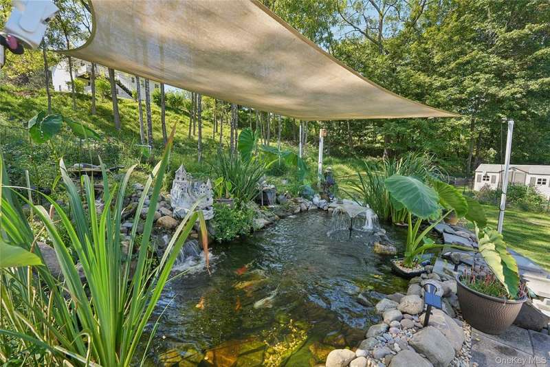 Welcome to 12 Sturr Lane in the heart of Florida, NY, a village within the town of Warwick. This spacious, bright, and airy raised ranch offers 4 bedrooms, 2 stylishly updated bathrooms, and a family room with a cozy brick wood-burning fireplace.One unique and special feature that is sure to mesmerize is the stunning, fully stocked Koi pond with a sparkling waterfall and dazzling night lights. The home offers the perfect layout with an updated, contemporary, yet warm style.The main level offers 3 bedrooms, a kitchen open to the dining area and living room, plus a renovated bathroom with a double vanity, bathtub, and state-of-the-art commode. The lower level features a large family room with a brick fireplace, an updated bathroom, one bedroom (presently utilized as a workshop) with new water-resistant vinyl flooring (see floorplan), a laundry room, a utility room, and access to the garage.The serene and chic interior has been painted in a neutral, cohesive palette, with new chandeliers and new contemporary interior doors. A new solar panel system was installed along with a battery backup that can provide power during power outages. The kitchen features gorgeous new tile flooring, a new LG refrigerator, light cabinetry, granite countertops, and LG appliances.The two-tiered decks offer plenty of space for entertaining, hobbies, and viewing the koi pond. The expansive yard features a vegetable garden and a new solar-powered shed.The location offers fiber optic internet available, municipal sewers, municipal waters and the Florida Union Free School District . Local amenities include downtown shops and restaurants, parks, farms, wineries, breweries, Legoland, Glenmere Lake and Greenwood Lake, golf, and hiking trails.