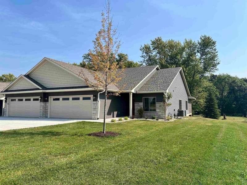 Located just a short golf cart ride from Denali's on the River and River Ridge Golf Course, this zero-entry, end-unit condominium is a blank slate for your personal finishing touches. Allowances are included in the price to complete flooring, lighting, trim, and doors. The primary bedroom features a bathroom roughed-in for a double sink, as well as a walk-in closet. A hall bathroom, second bedroom, and laundry room with a pocket door complete the interior of the home. An oversized two-car garage is attached, along with a large screened-in deck off of the living room. Call today for more information!