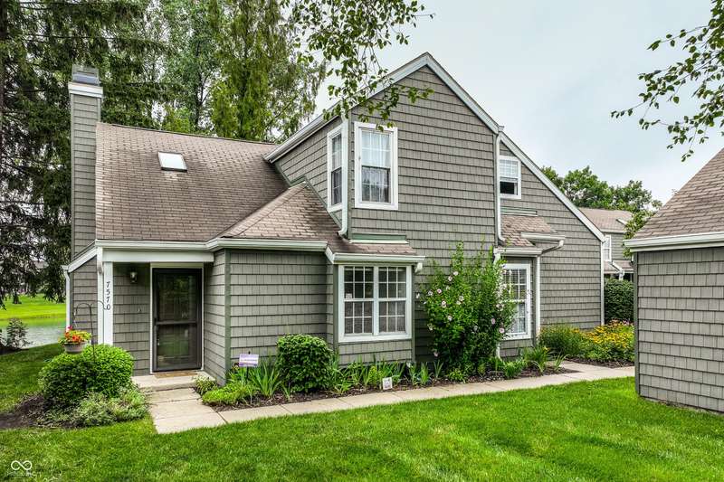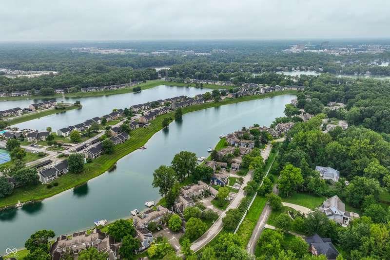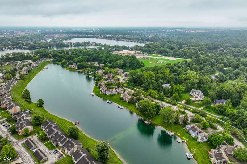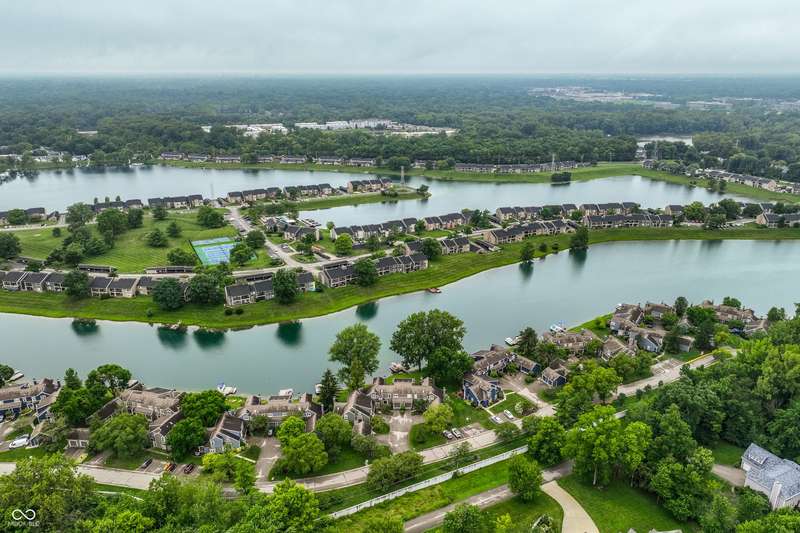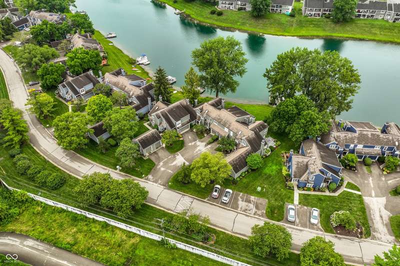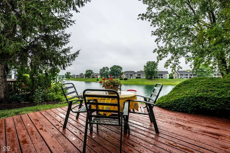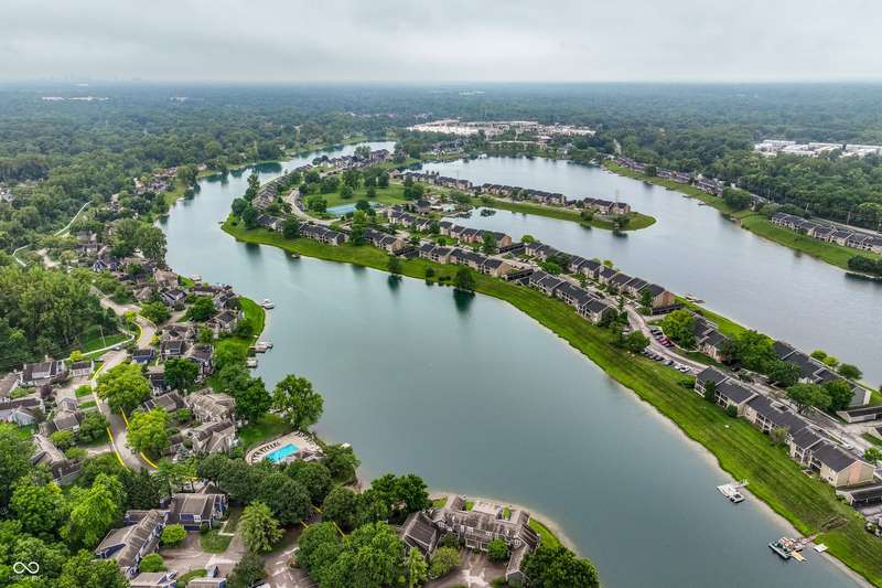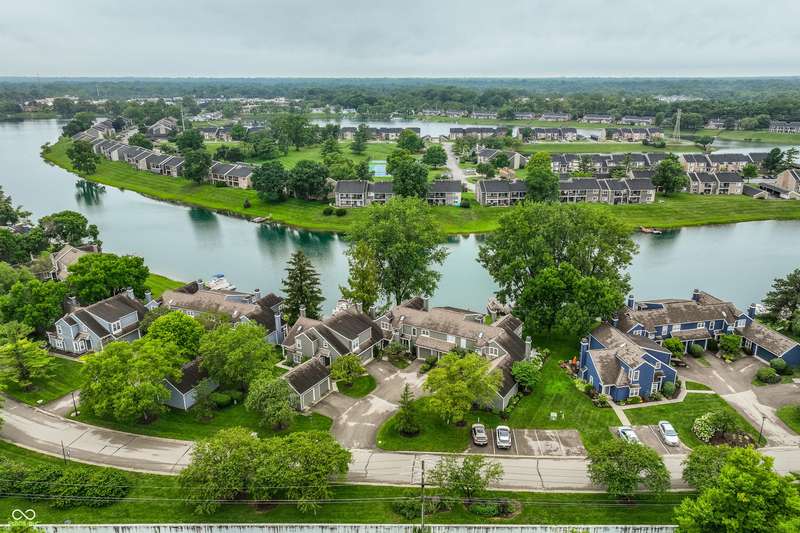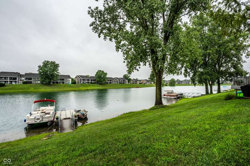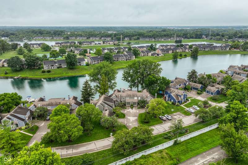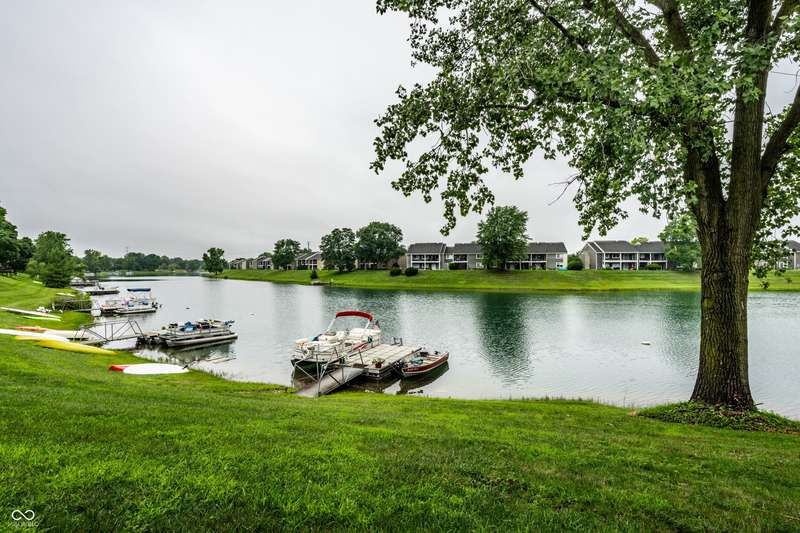Renovated, re-painted in neutral colors and looking even better, this condominium is nestled in Harbour Club, a charming community on Somerset lake, and offers a compelling opportunity to own a slice of Indianapolis living with the best restaurants and shopping of Washington township. With 978 square feet of living area, this condominium offers a comfortable living space right on the lake. The layout includes two freshly painted bedrooms with new carpet, offering a private retreat and flexible space for various lifestyle needs. A full bathroom and an additional half bathroom provide practical convenience for residents and guests alike. The kitchen has been totally updated with sleek new cabinets, a gorgeous quartz countertop, a brand new fridge, dishwasher and sink and new laminate flooring that ties it in to the great room. The great room has high cathedral ceilings, several windows, beautiful laminate flooring, designed to feel open, airy and full of natural light. The great room also has a full view of the lake and opens to a delightful porch. The porch is large enough for entertaining and can be a quiet haven to connect to nature and the lake and enjoy sunsets. The porch is a couple of steps from the 80 acres lake where one may enjoy many water activities. Finally, the one car detached garage adds to the convenience and practicality of the setting and it provides additional room for storage. In addition to tennis courts and a pool, the community features a vibrant clubhouse that hosts frequent events and live music, offering plenty of opportunities to socialize and connect with neighbors. This single-story condominium presents a chance to embrace a relaxed, low maintenance lifestyle in a well-established location, a wonderful place to call home.