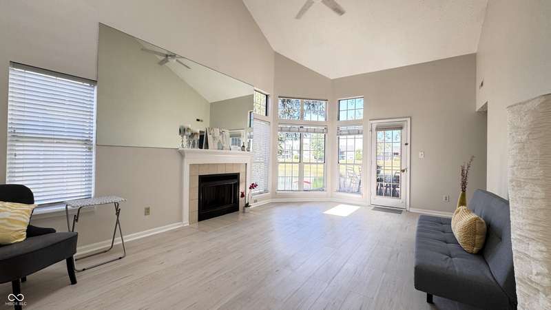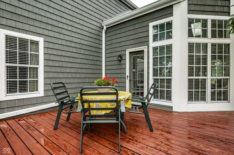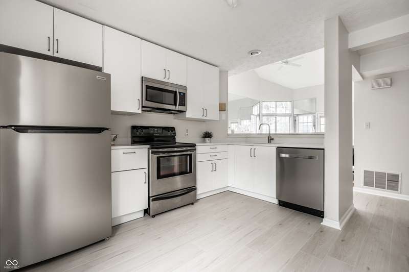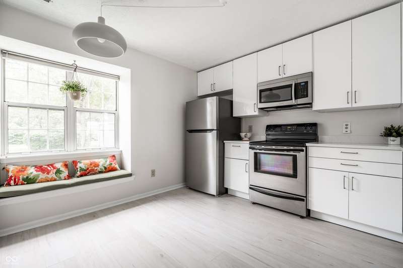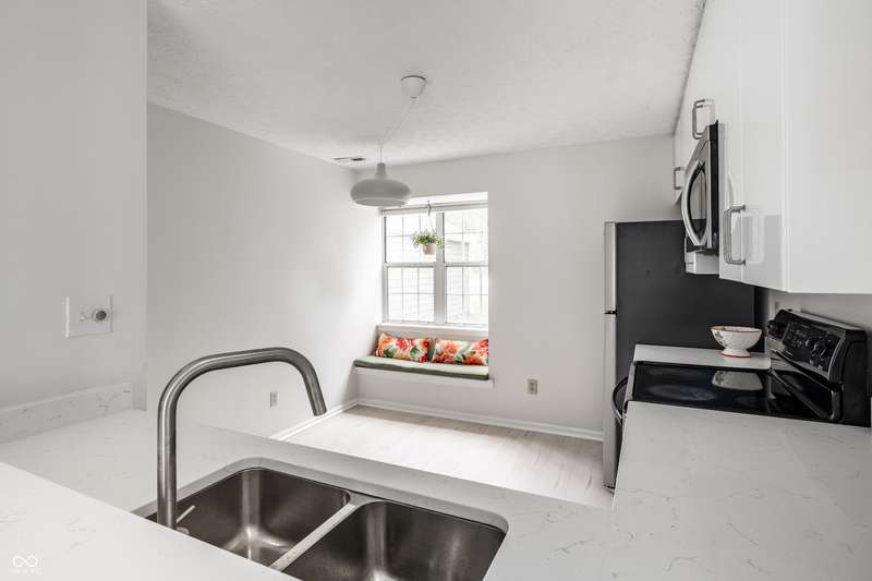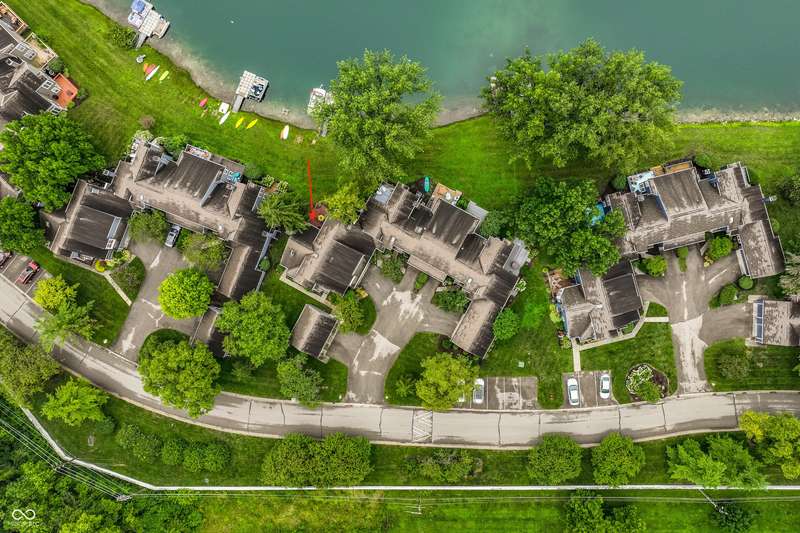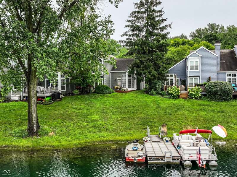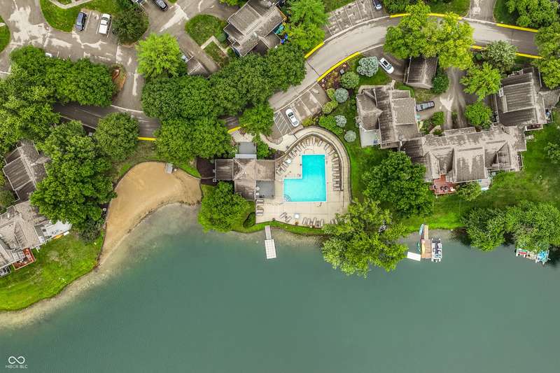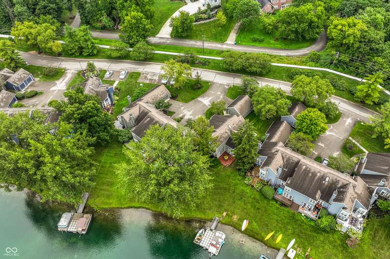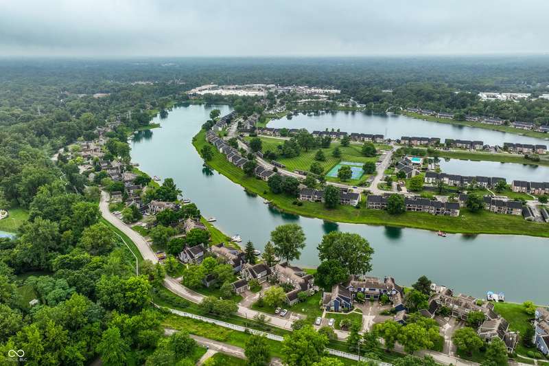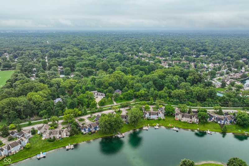Renovated, re-painted in neutral colors and looking even better, this condominium is nestled in Harbour Club, a charming community on Somerset lake, and offers a compelling opportunity to own a slice of Indianapolis living with the best restaurants and shopping of Washington township. With 978 square feet of living area, this condominium offers a comfortable living space right on the lake. The layout includes two freshly painted bedrooms with new carpet, offering a private retreat and flexible space for various lifestyle needs. A full bathroom and an additional half bathroom provide practical convenience for residents and guests alike. The kitchen has been totally updated with sleek new cabinets, a gorgeous quartz countertop, a brand new fridge, dishwasher and sink and new laminate flooring that ties it in to the great room. The great room has high cathedral ceilings, several windows, beautiful laminate flooring, designed to feel open, airy and full of natural light. The great room also has a full view of the lake and opens to a delightful porch. The porch is large enough for entertaining and can be a quiet haven to connect to nature and the lake and enjoy sunsets. The porch is a couple of steps from the 80 acres lake where one may enjoy many water activities. Finally, the one car detached garage adds to the convenience and practicality of the setting and it provides additional room for storage. In addition to tennis courts and a pool, the community features a vibrant clubhouse that hosts frequent events and live music, offering plenty of opportunities to socialize and connect with neighbors. This single-story condominium presents a chance to embrace a relaxed, low maintenance lifestyle in a well-established location, a wonderful place to call home.