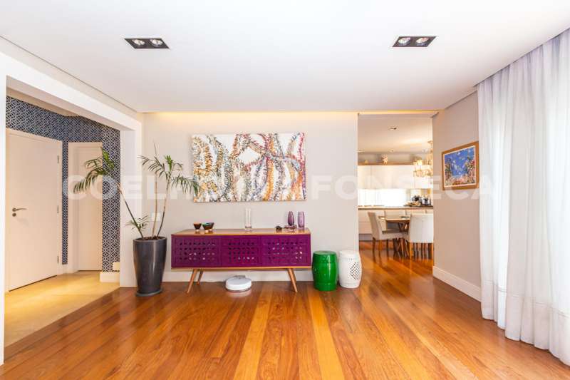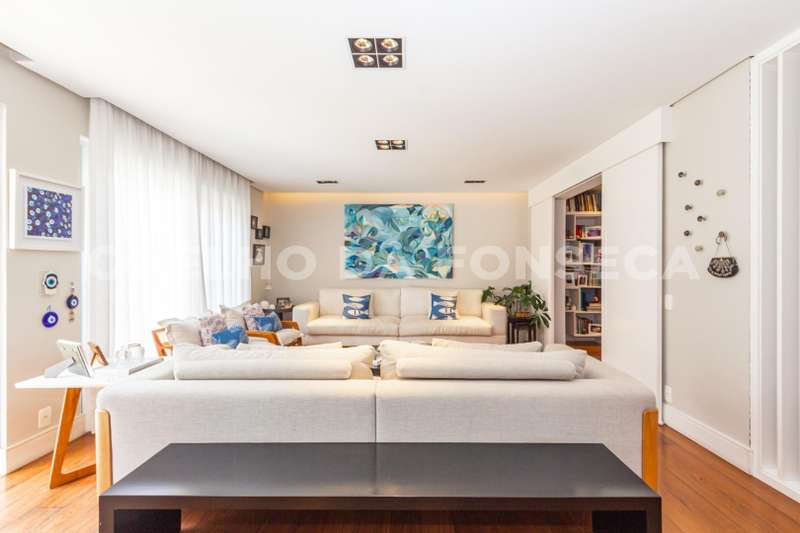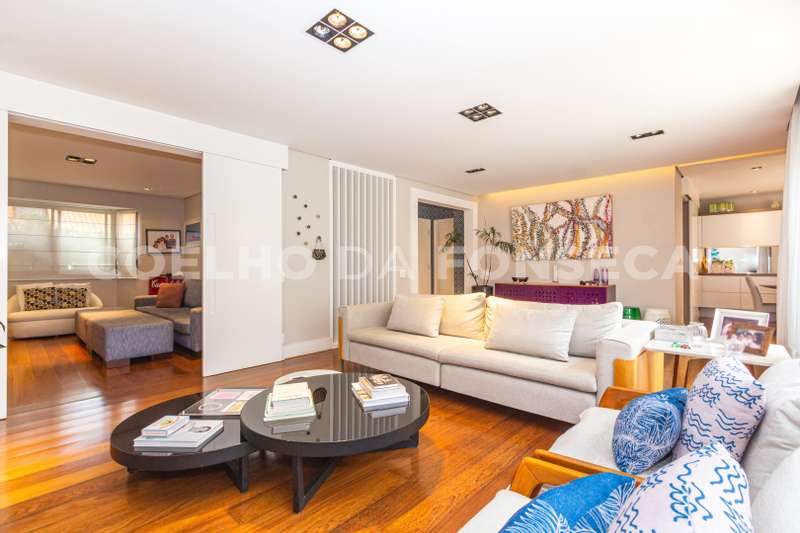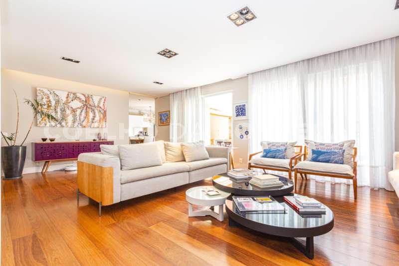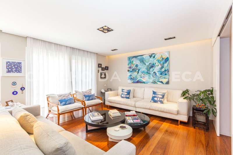 Living amplo nivelado ao jardim , piscina e area Gourmet. Dando acesso tambem ao Home theater e a sala de jantar.