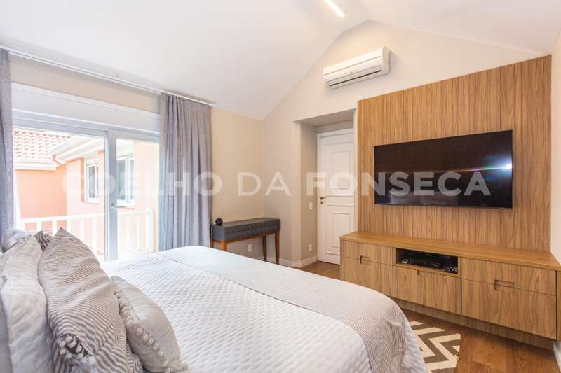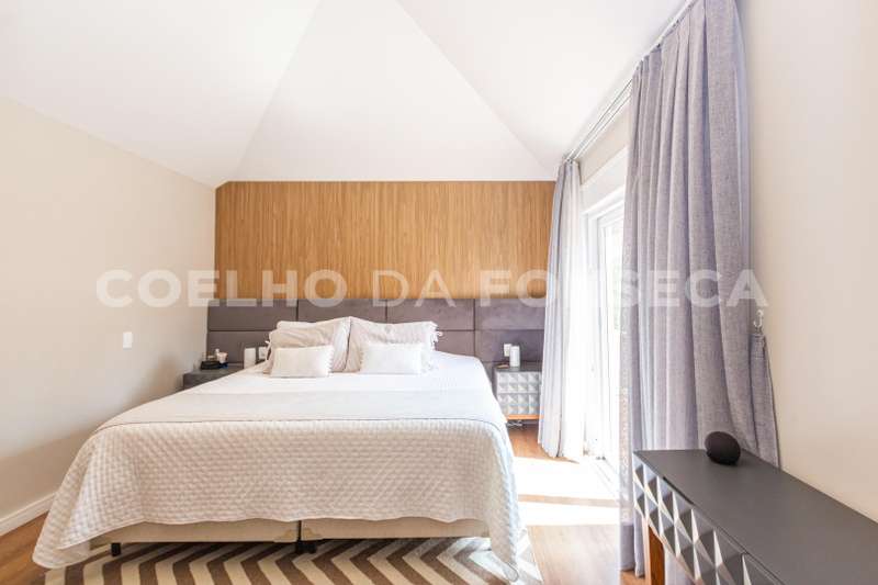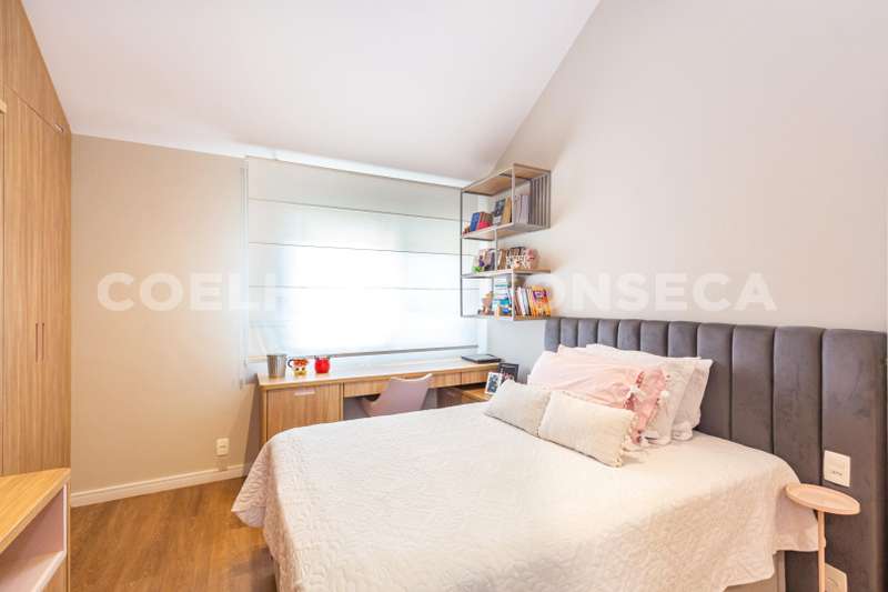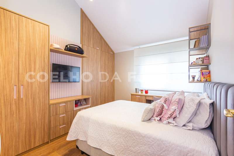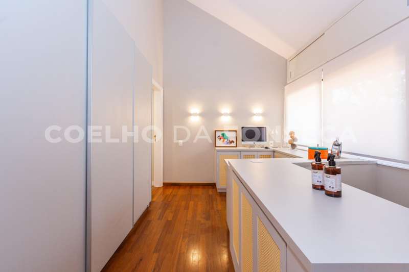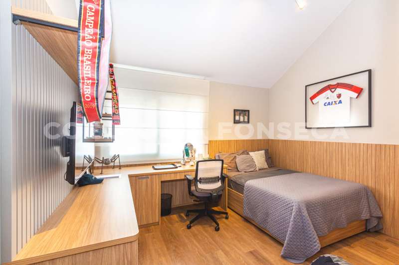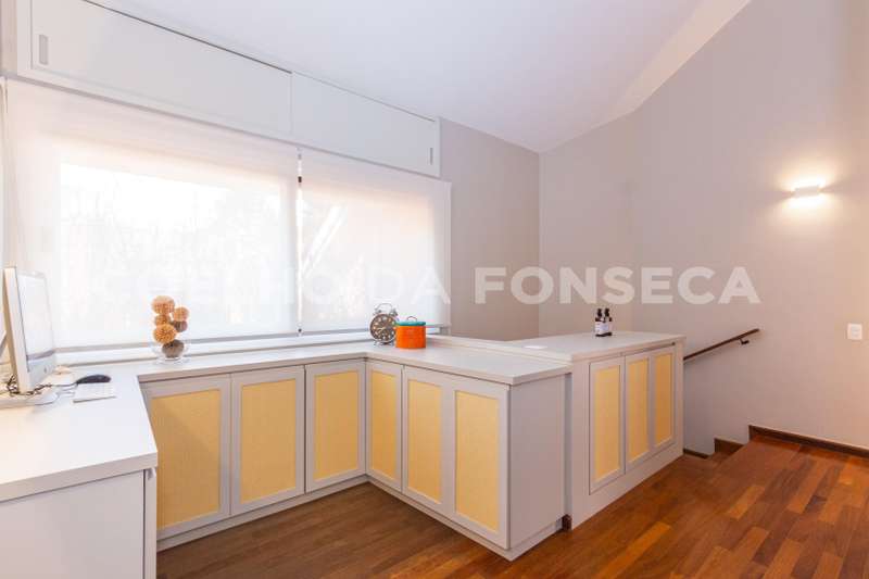 No piso superior, escritório, duas suites ,sendo uma delas a master com closet e varanda com vista para piscina e jardim.