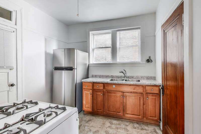 Welcome to this charming one-bedroom, one-bathroom high first-floor unit in a well-maintained boutique four-unit building in the heart of Portage Park. Just steps from the 38-acre park, you'll enjoy year-round sports, recreation programs, cultural activities, and family events right outside your door. Inside, the home features beautiful hardwood floors throughout the main living area, spacious rooms with a separate dining room, and a cozy living room accented by a decorative vintage fireplace with built-in bookcases. Large windows fill the space with natural light throughout the day. The sizable kitchen offers plenty of cabinet space along with a large walk-in pantry, while the oversized bedroom includes generous closet space. Heat is included in rent, with tenants responsible only for electric, cooking gas, cable/internet. Common-area coin laundry, ample street parking, window A/C units responsibility of tenants, and a pet-friendly policy allowing dogs under 25 lbs (no cats). Additional storage in the basement must be pre-arranged. Conveniently located near public transportation, shopping, dining, and neighborhood favorites, this inviting home is the perfect place to call your own. $1,000 security deposit and a minimum credit score of 680 required. Pet deposit required.