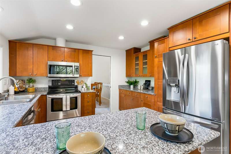 **MOTIVATED SELLERS** Beautiful home in coveted Whispering Heights, offering 2,920 sq ft of refined living space on a 7,970 sq ft lot. This 3-bdrm, 2.5-bth residence features fresh interior paint and new carpet throughout. Main level includes sunken living room w/cozy fireplace, large windows for natural light, formal dining area, remodeled kitchen w/granite countertops, stainless steel appliances and custom pantry cabinet. Upper-level Primary Suite w/5-piece bath, dual sinks, dual closets, loft w/extra storage, fireplace, plus two decks. Lower level features 2-additional bdrms, full bath, laundry & spacious family room w/patio access. Enjoy beautifully landscaped yards, large 2-car garage & off-street parking (New neighboring fence in Sep)