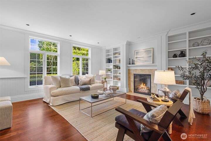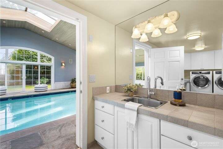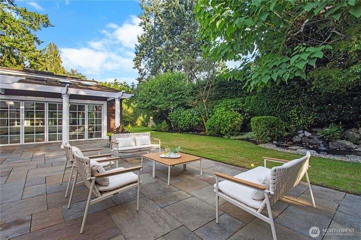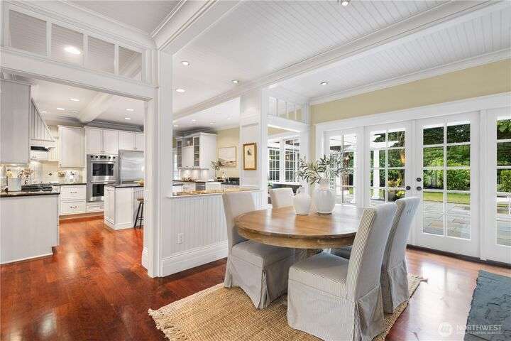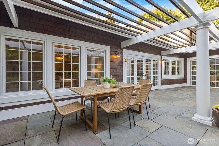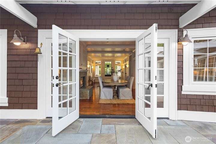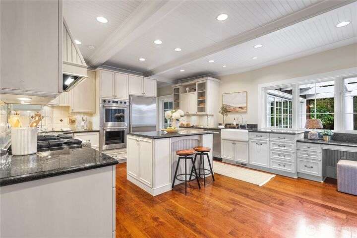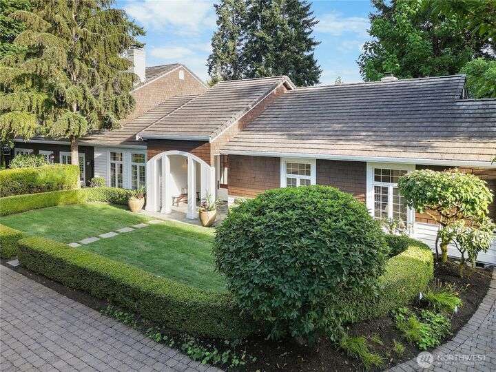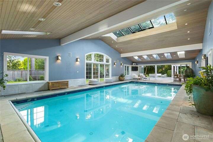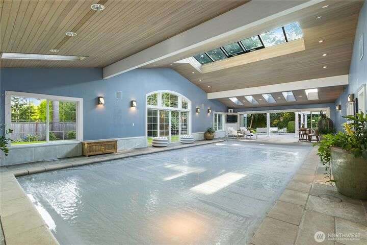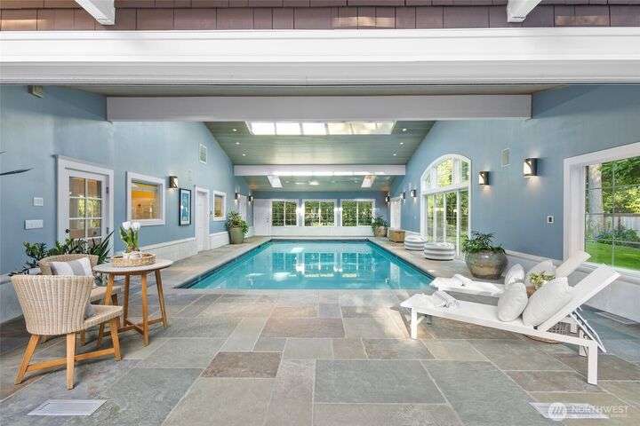 Experience timeless elegance & resort-style living in this exceptional Cape Cod-style home, set on a lushly landscaped private lot steps from Medina Beach, schools, post office & Kitchen and Market. Storybook charm blends w/ high-end features including private main-floor primary & indoor heated pool bathed in natural light from skylights & retractable glass doors that open to the serene outdoors. Entertain in the elegant living/dining areas or gather in the gourmet kitchen which flows effortlessly to expansive Pennsylvania Bluestone patios. Spacious flat yard offers a tranquil retreat w/ a peaceful pond & waterfall & mature landscaping. Located in the heart of Medina, this home captures the very best of timeless style & modern convenience.