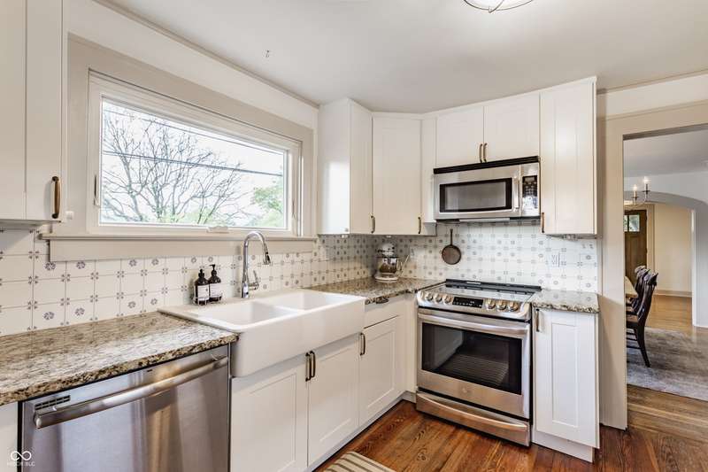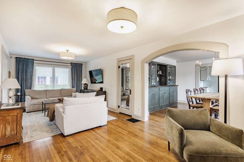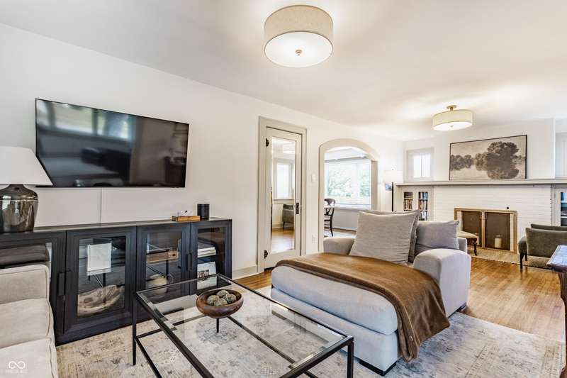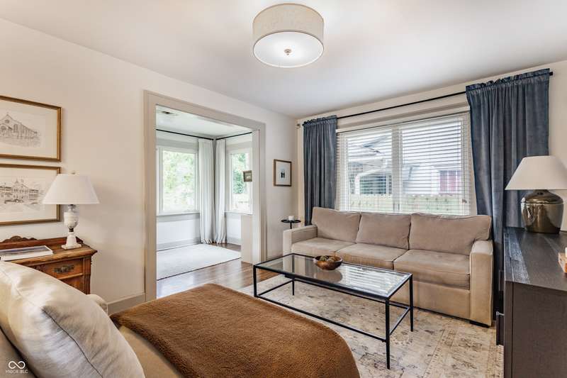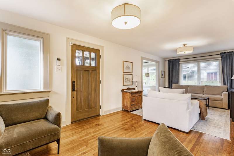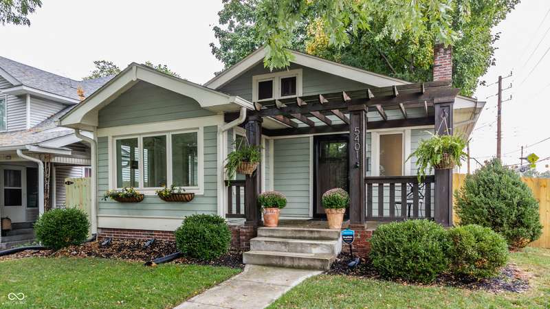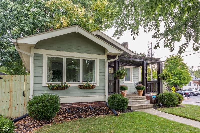 Charming Bungalow on the Monon Trail - Updated, Stylish, & Move-In Ready! Welcome to this beautifully maintained 3-bed, 2-bath bungalow nestled in the heart of Broad Ripple, walking distance to the area's top coffee shops, restaurants, parks, & boutiques. Blending classic charm w/ modern updates, this home is the perfect balance of character & convenience! Inside, you'll love the arched entryways, original hardwood floors, sun-drenched sunroom, neutral color palette, & meticulous upkeep! Kitchen includes granite countertops, white cabinetry, & ss appliances. The dining room features custom built-in cabinetry (2023) for added style & smart storage. Finished living space in the basement includes a spacious bedroom w/ custom closet & egress window, full bath, bonus room, & ample storage closets! Backyard is ideal for entertaining w/ new privacy fence (2025), large patio, & string lights. A retaining wall and new sidewalk (2025) add curb appeal and convenient access along 54th Street to the Monon Trail. The oversized garage w/ industrial heater is perfect for a home gym, workshop, or added rec space. This home has it all-location, charm, updates, and outdoor living. Don't miss this rare opportunity on one of the most walkable streets in Indy!